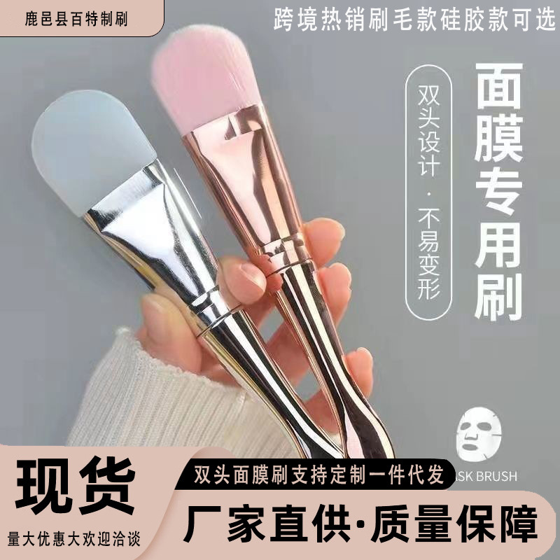 スプーン付き電気めっきマスクブラシ軟毛ブラシシリコンブラシ軟膜粉ブラシ双頭マスクツール化粧ブラシクロスボーダー
