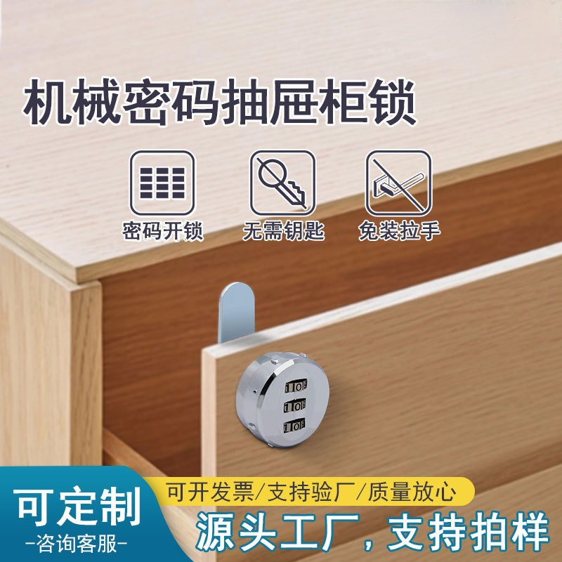 办公室免打孔转舌锁机械抽屉密码锁家用床头柜防盗锁抽屉密码锁