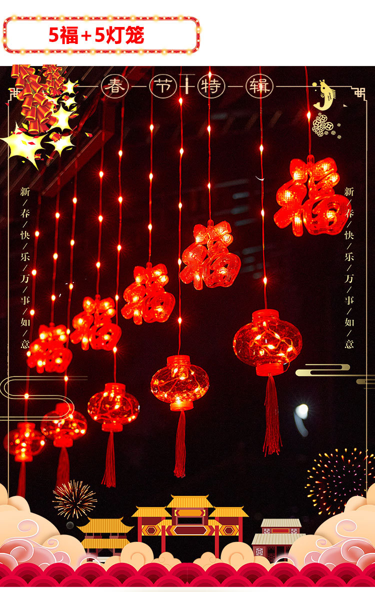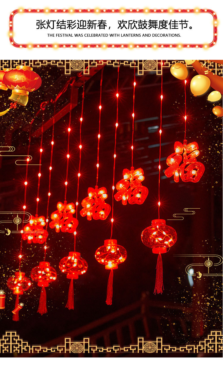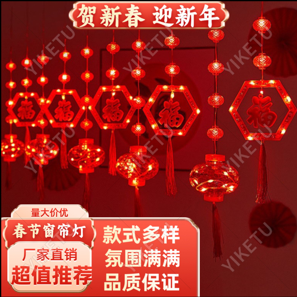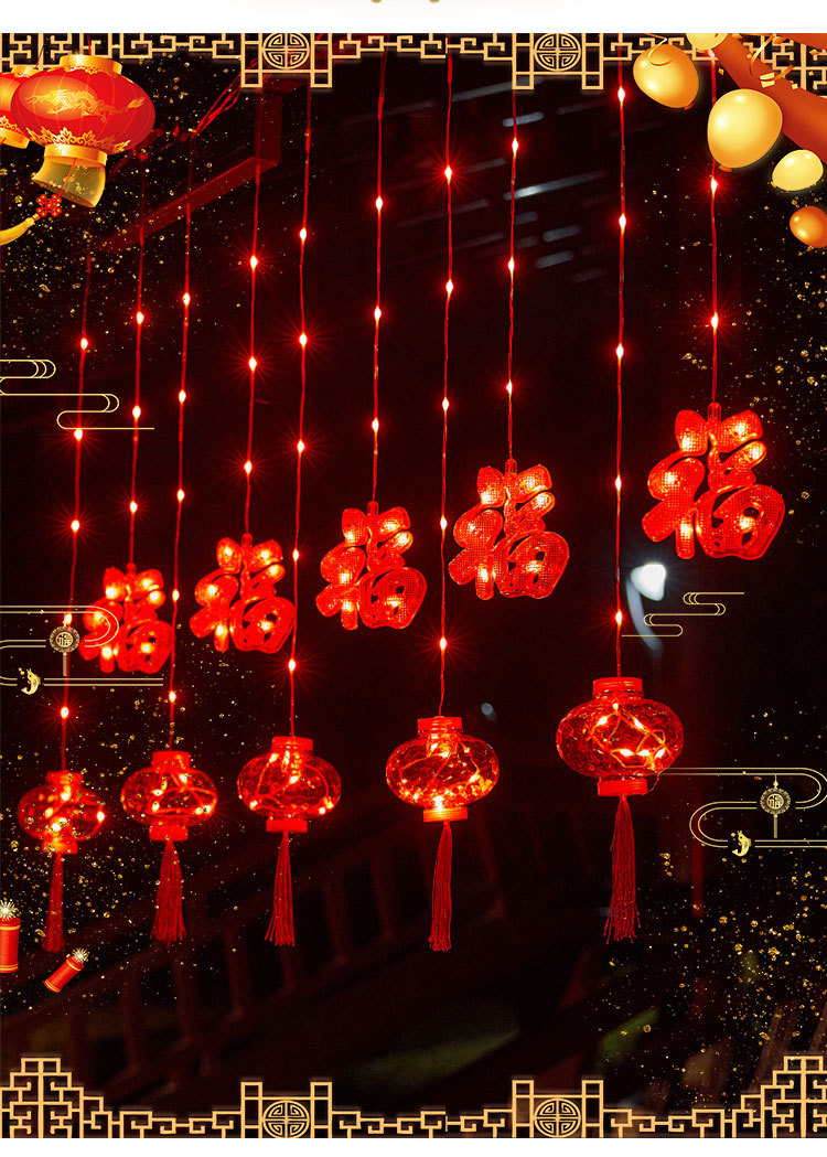 新年窗帘灯春节红灯笼氛围灯家用过年阳台窗户装饰福字灯led彩灯