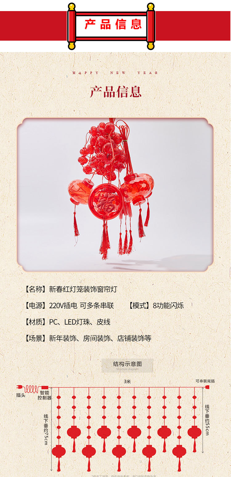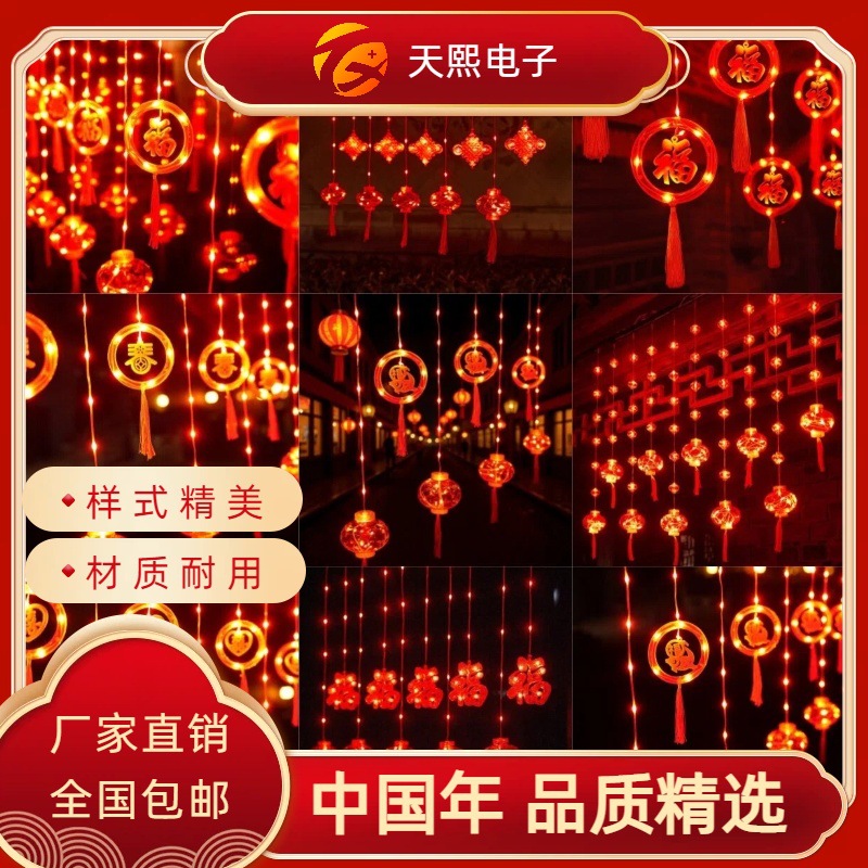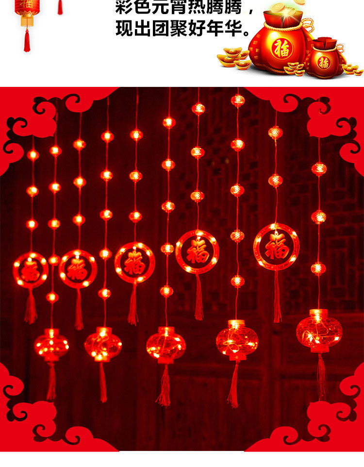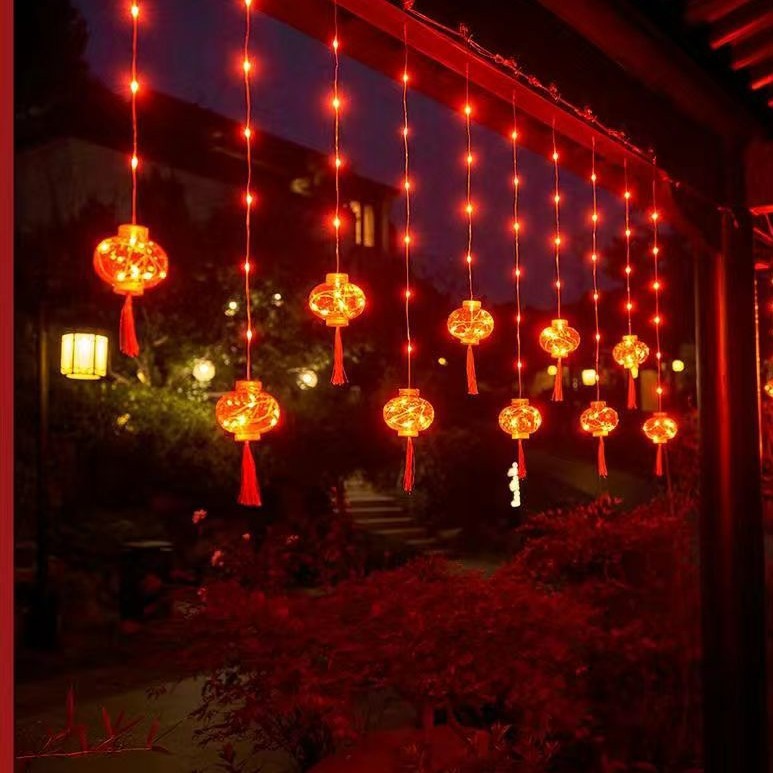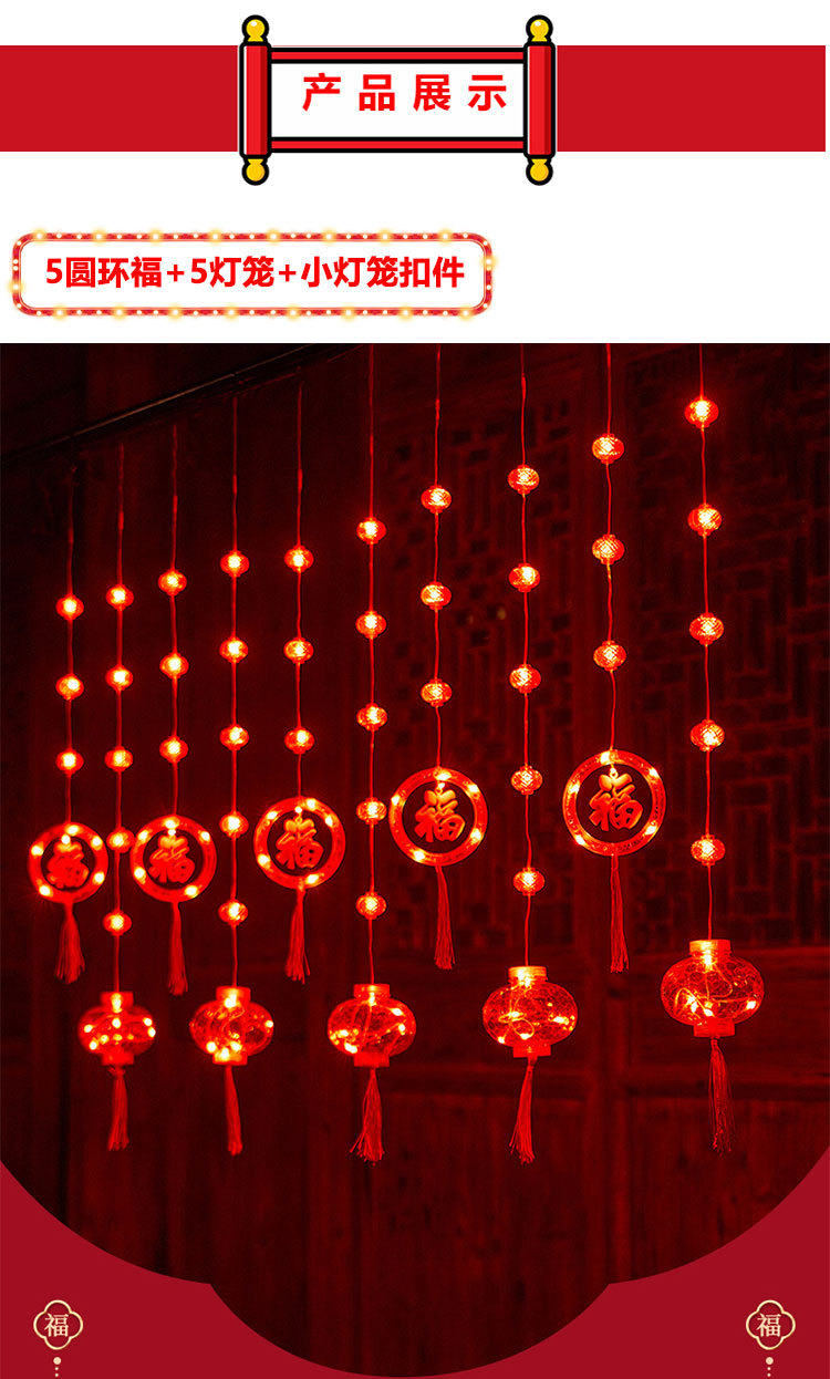 新年窗帘灯春节红灯笼氛围灯家用过年阳台窗户装饰福字灯led彩灯