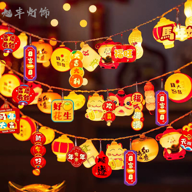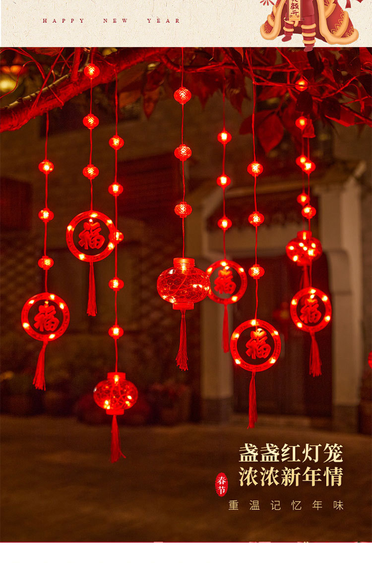 正月飾り提灯カーテン灯旧正月提灯発光福字部屋ベランダ庭園おめでたい雰囲気灯防水