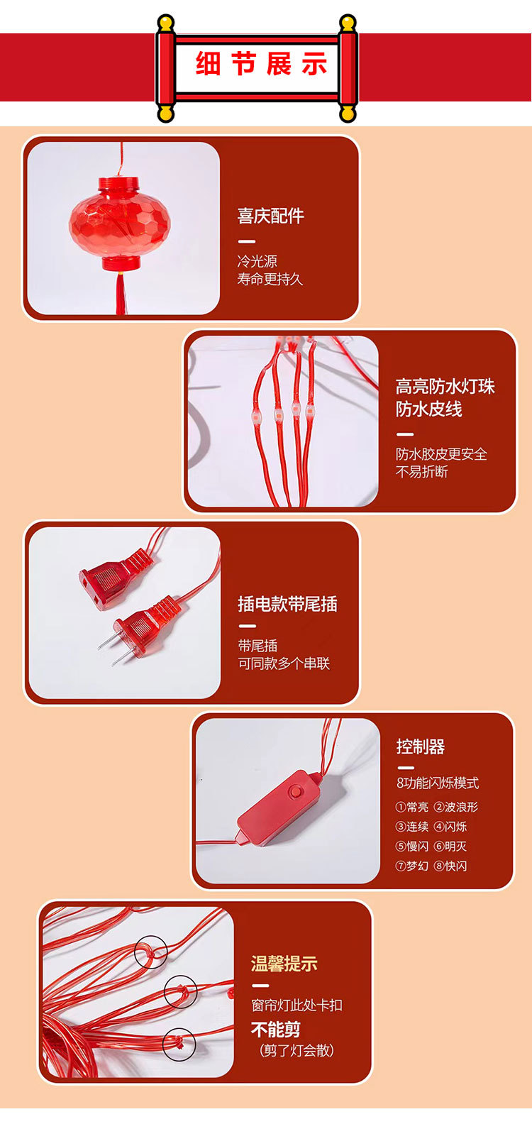 2025红灯笼窗帘灯led皮线装饰灯串过年春节氛围彩灯节日室内