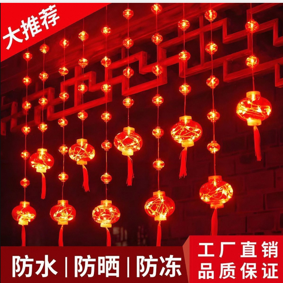 春节喜庆红灯笼窗帘灯新年装饰阳台门口挂灯过年窗帘灯红灯笼灯串