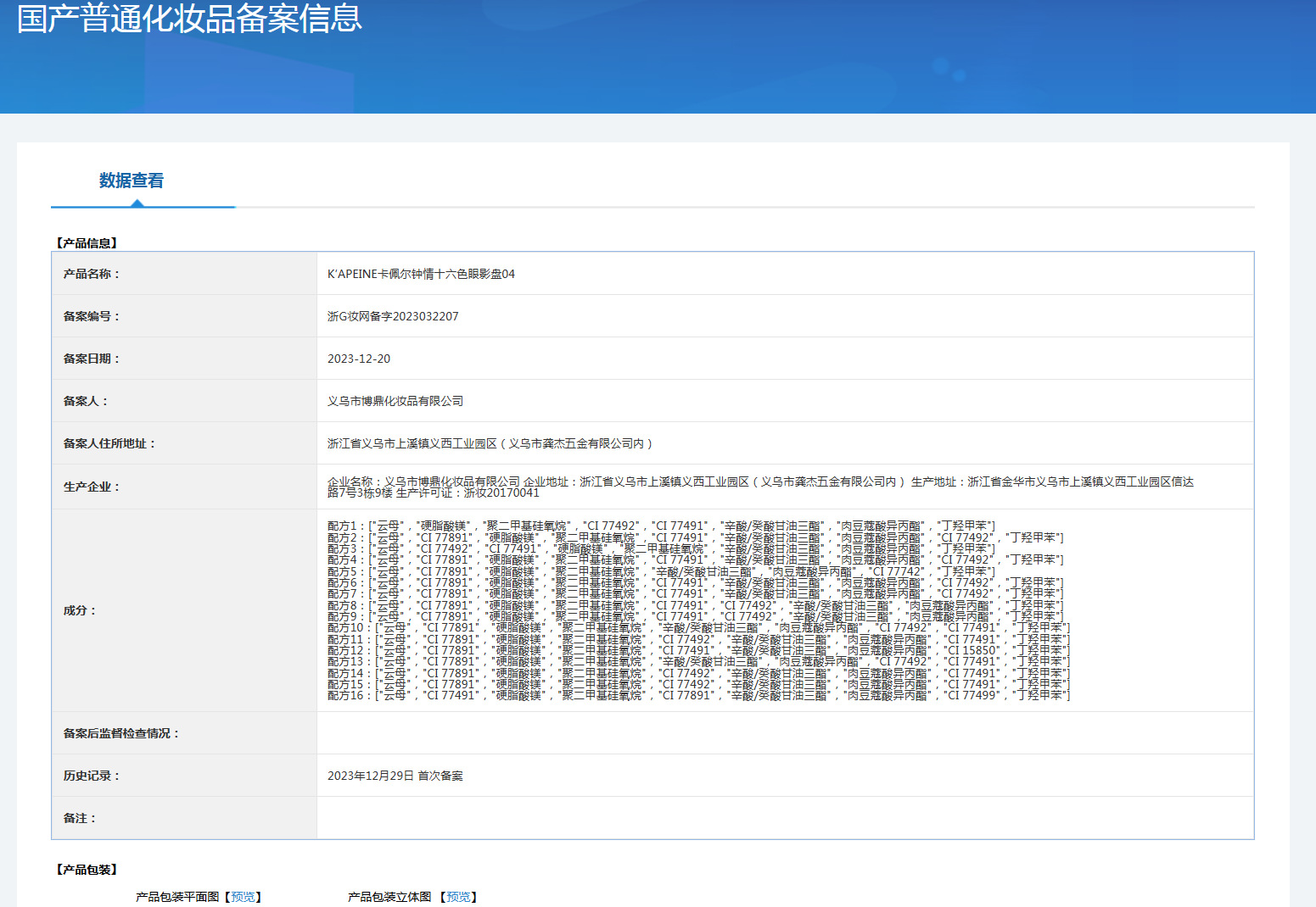 产品名称:K'APEINE卡佩尔钟情十六色眼影盘