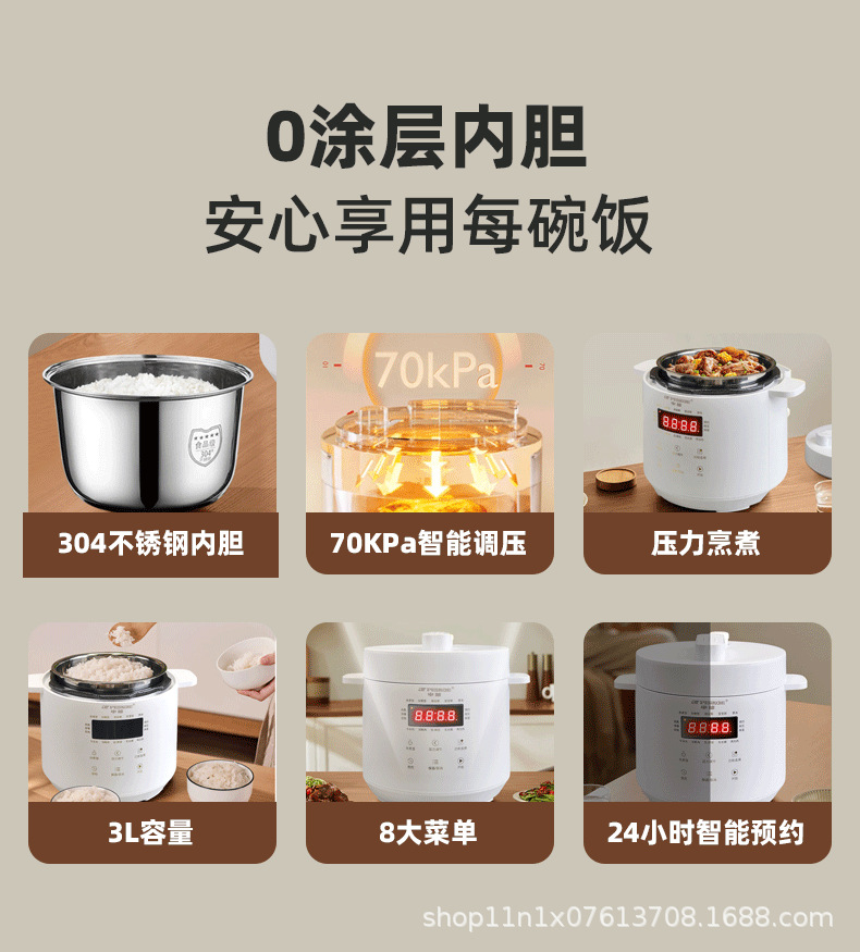新型陶磁器内胆電気圧力鍋家庭用3リットル無コーティング知能予約炊飯器小型電気圧力鍋