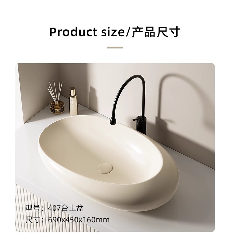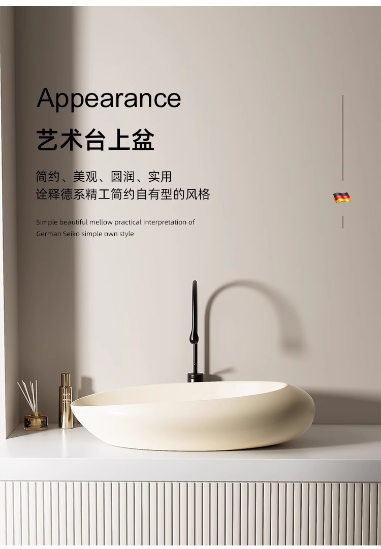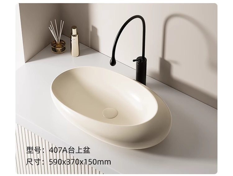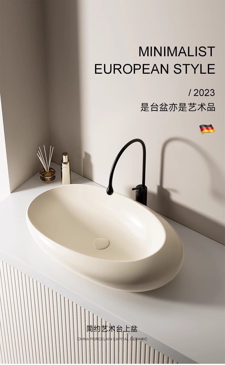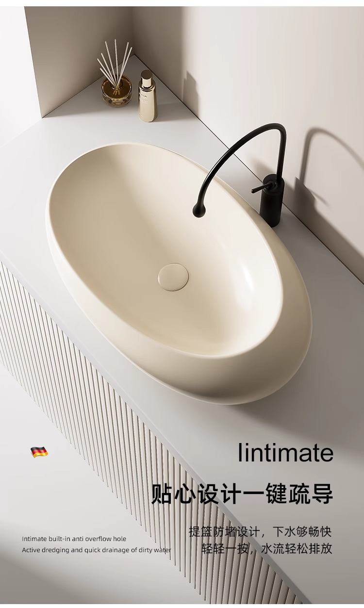 創意個性新型陶磁器台上盆つや消しクリーム風ベランダトイレ楕円形手洗い洗面器