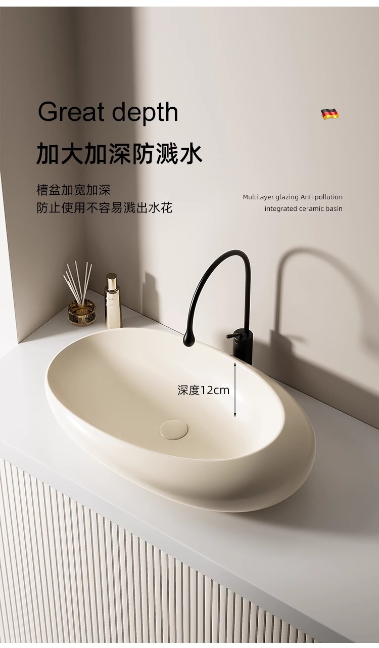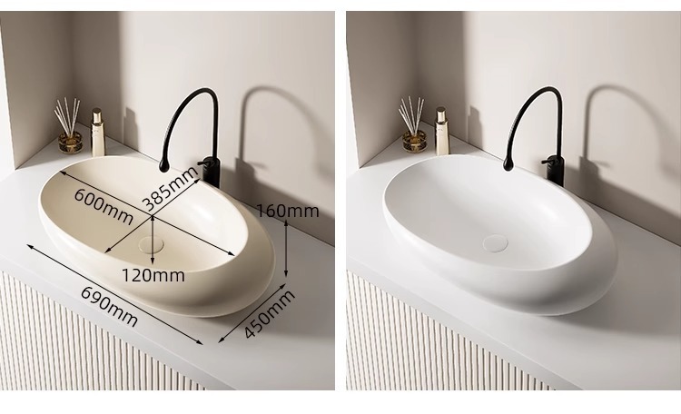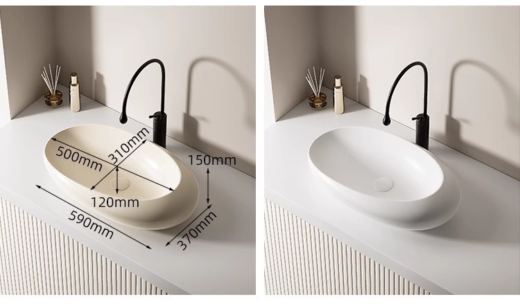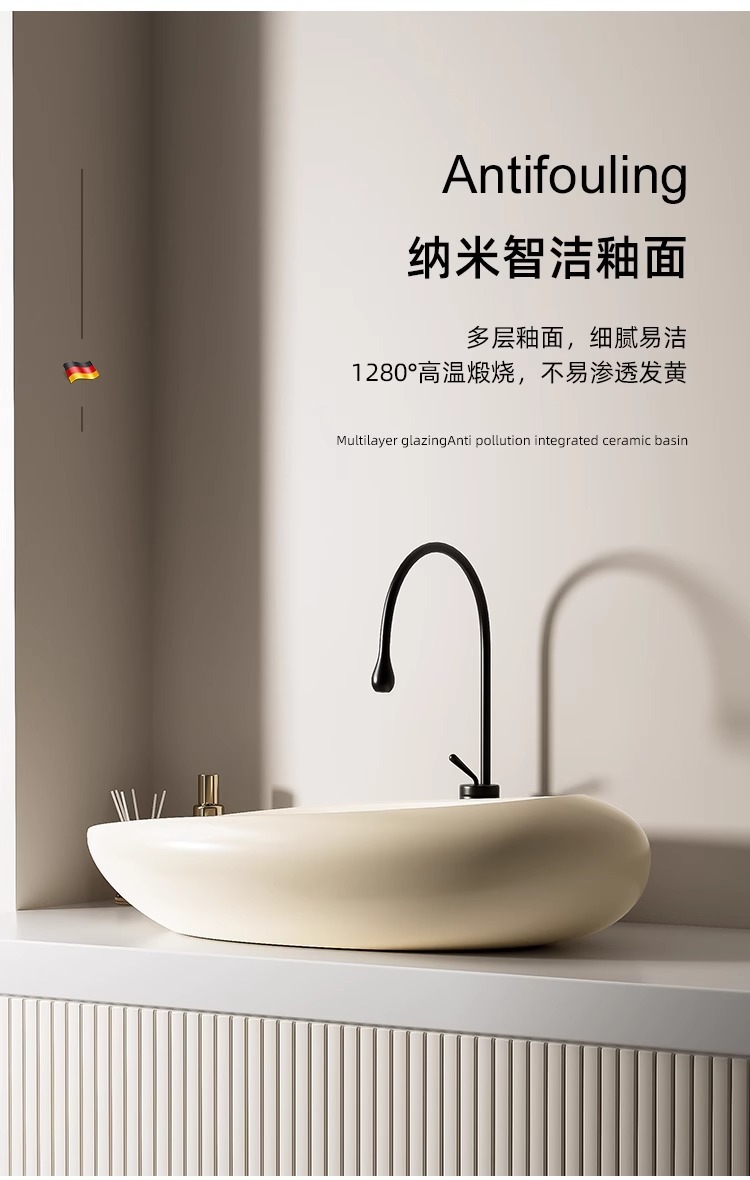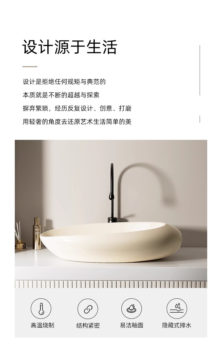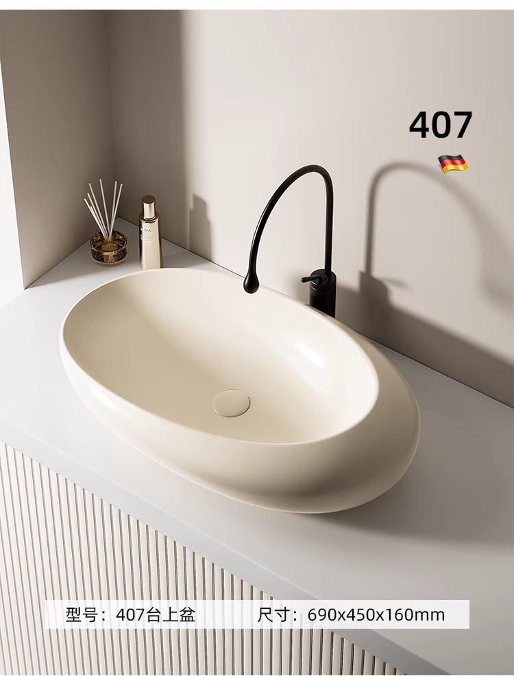 創意個性新型陶磁器台上盆つや消しクリーム風ベランダトイレ楕円形手洗い洗面器