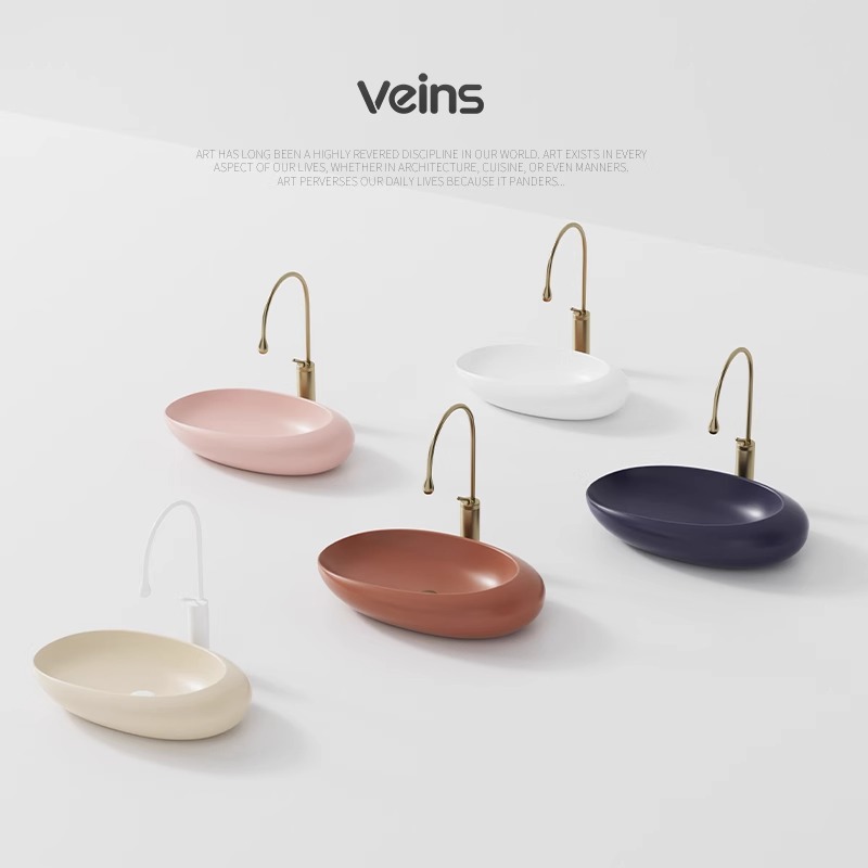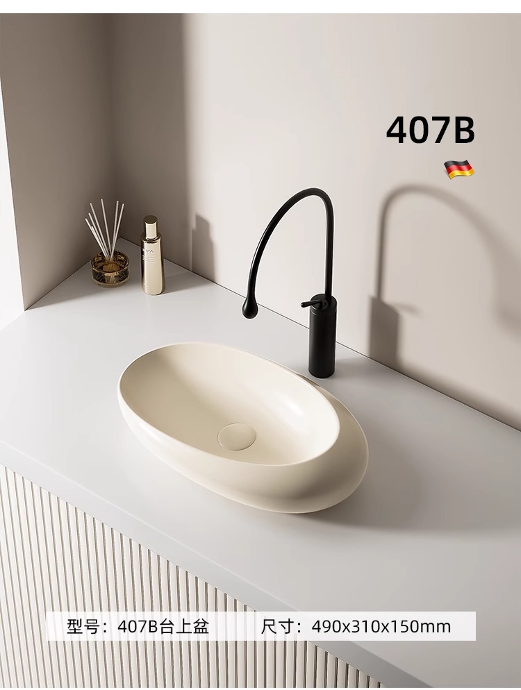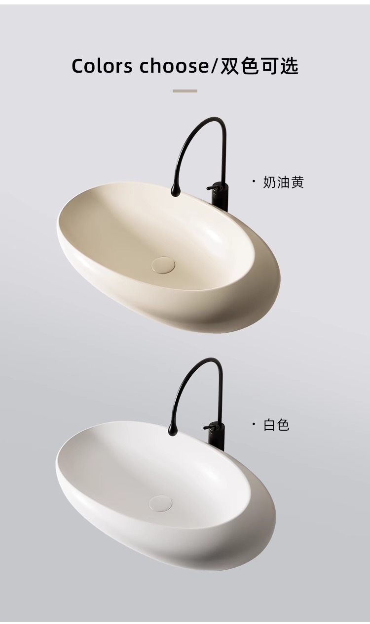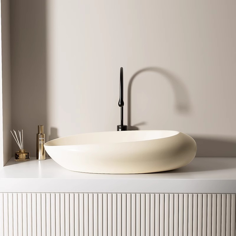 クリーム色の卓上洗面器、カラフルな異形アート洗面器、楕円形の洗面器、セラミック製洗面器、洗面台