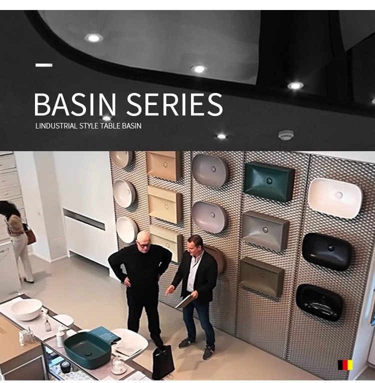 ダークグリーンマットデスクトップ洗面台正方形北欧セラミックカラー洗面台バスルームガングレー洗面台