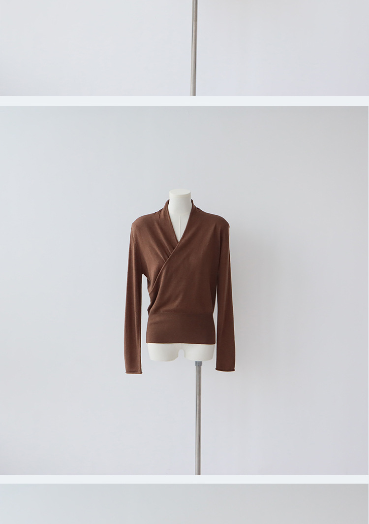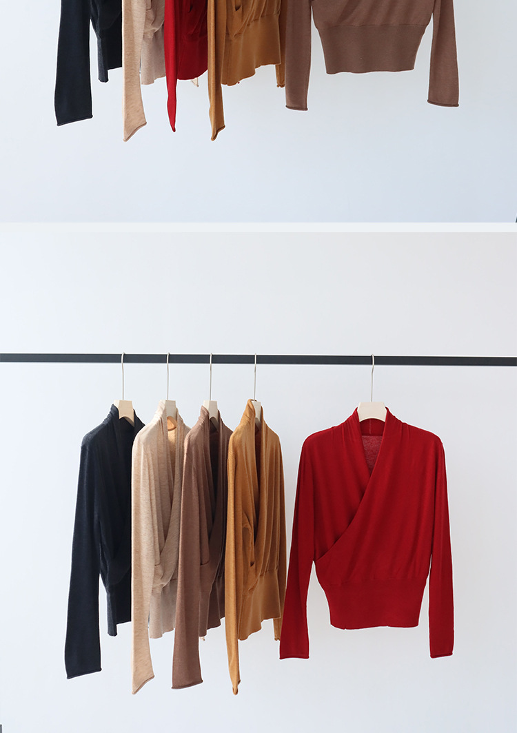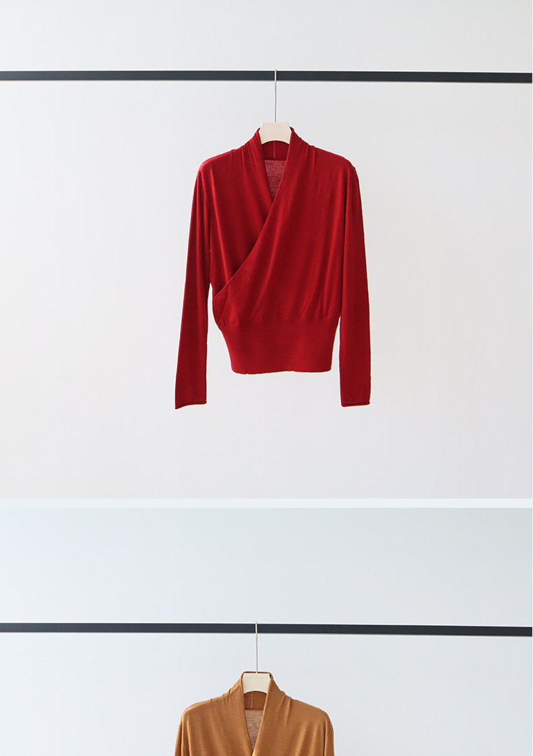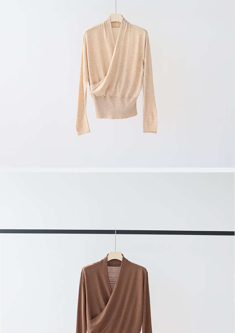 リヨセルテンセル春夏クロスストラップシンプルスタイルニットセーターレディース長袖Vネックエアコンシャツストラップデザイン