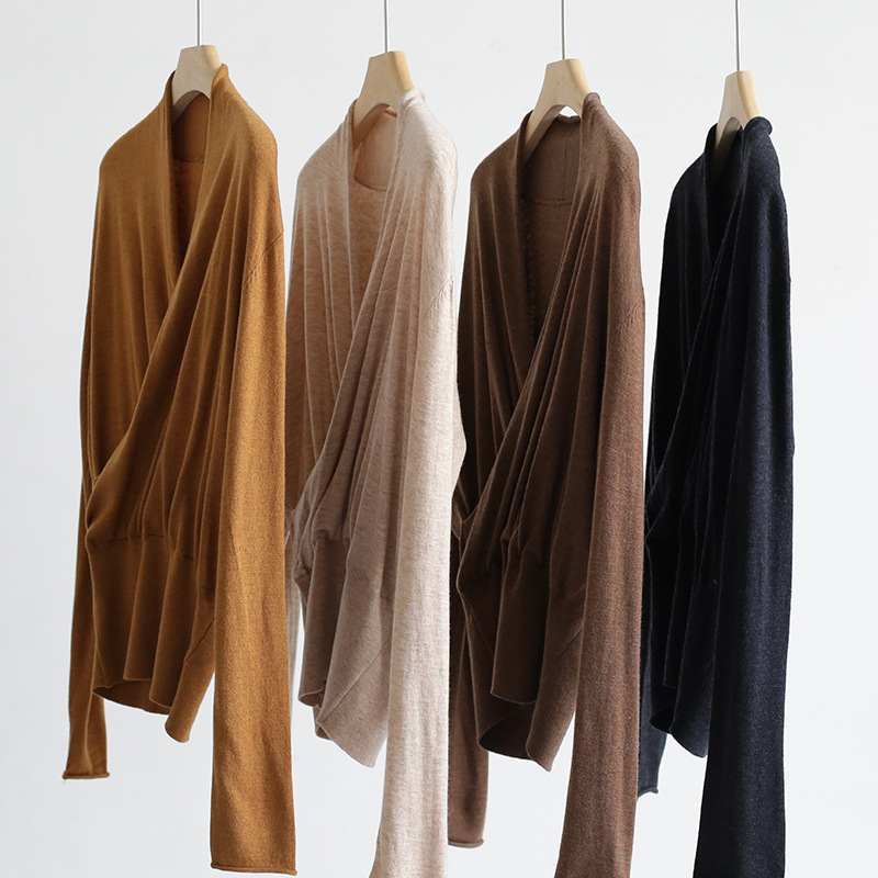 リヨセルテンセル春と秋の長袖セーターオープンデザインシャツストラップショールサスペンダー付きカーディガン通気性