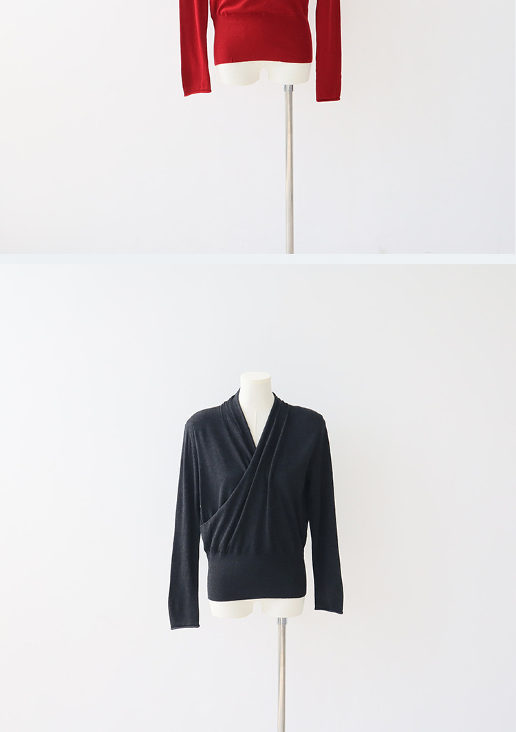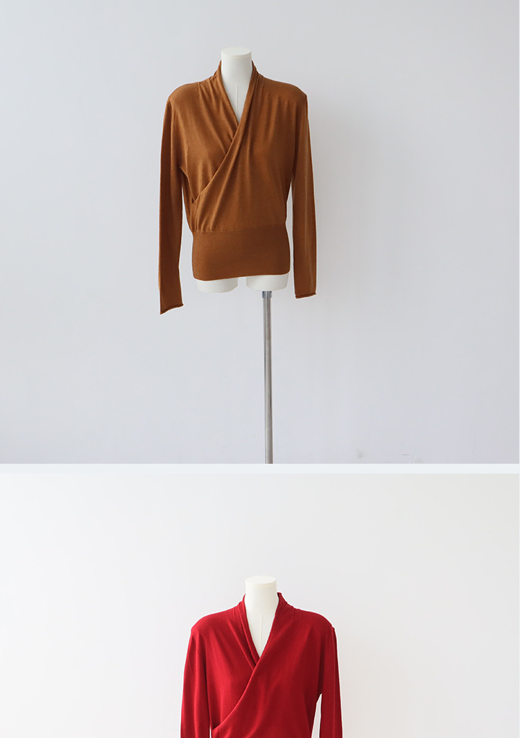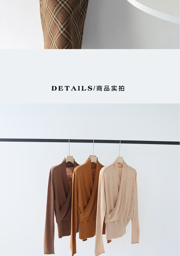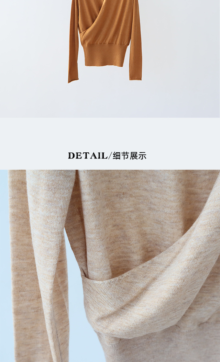 法式复古气质褶皱交叉门禁V领针织衫收腰显瘦羊毛衫长袖打底35320