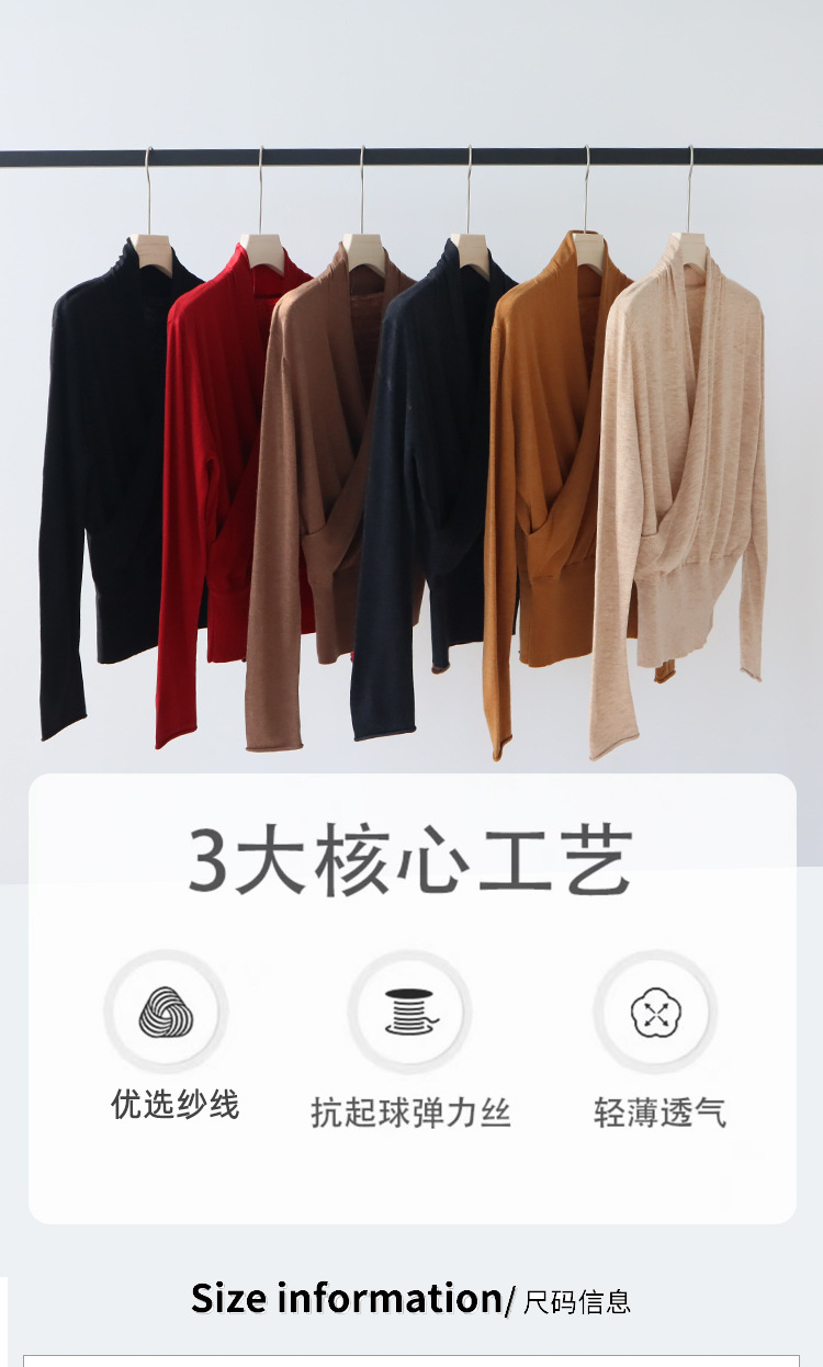 法式交叉裹胸长袖收腰针织衫女秋冬新款chao细羊毛混纺打底上衣