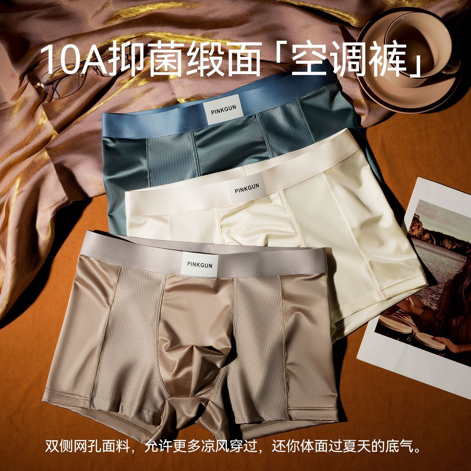 轻奢凉感男士内裤冰丝空调裤透气裆缎面网眼平角裤夏季爆款