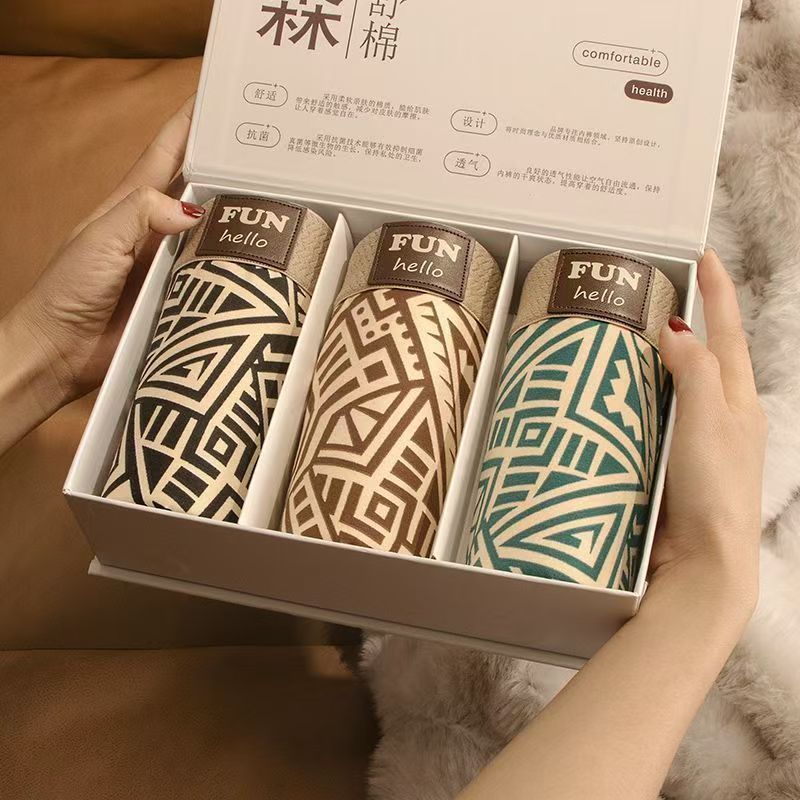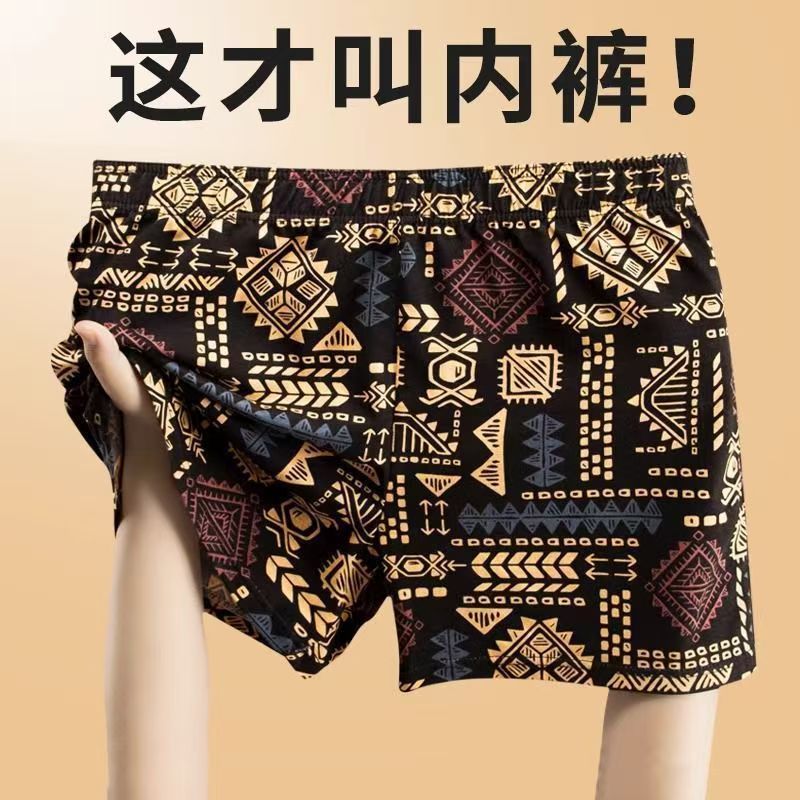 男性平角四角ズボン2025年春季新型レトロ民族風7a抗菌快適幾何学下着代発