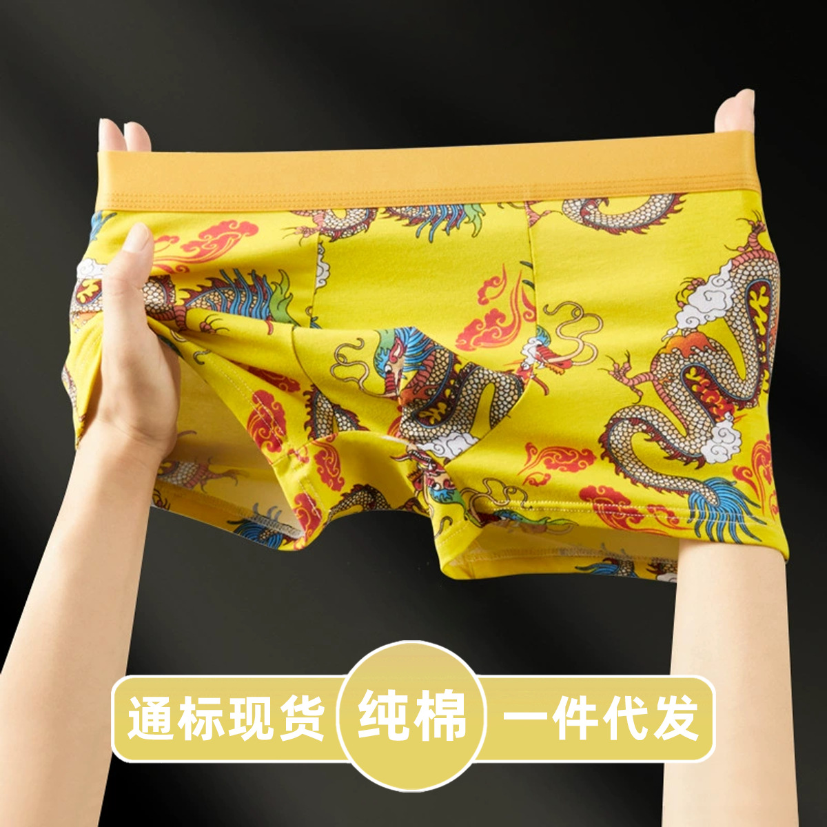 現物卸売り覇気龍紋男性下着ファッション龍紋模様平角ズボン龍年本命年大紅パンツ