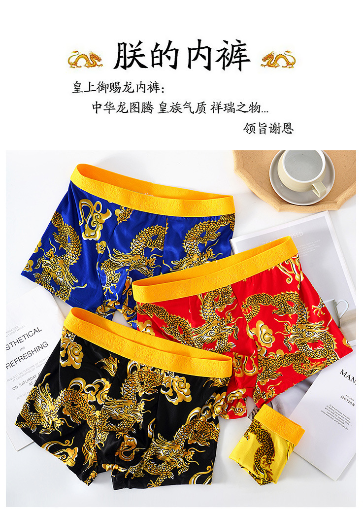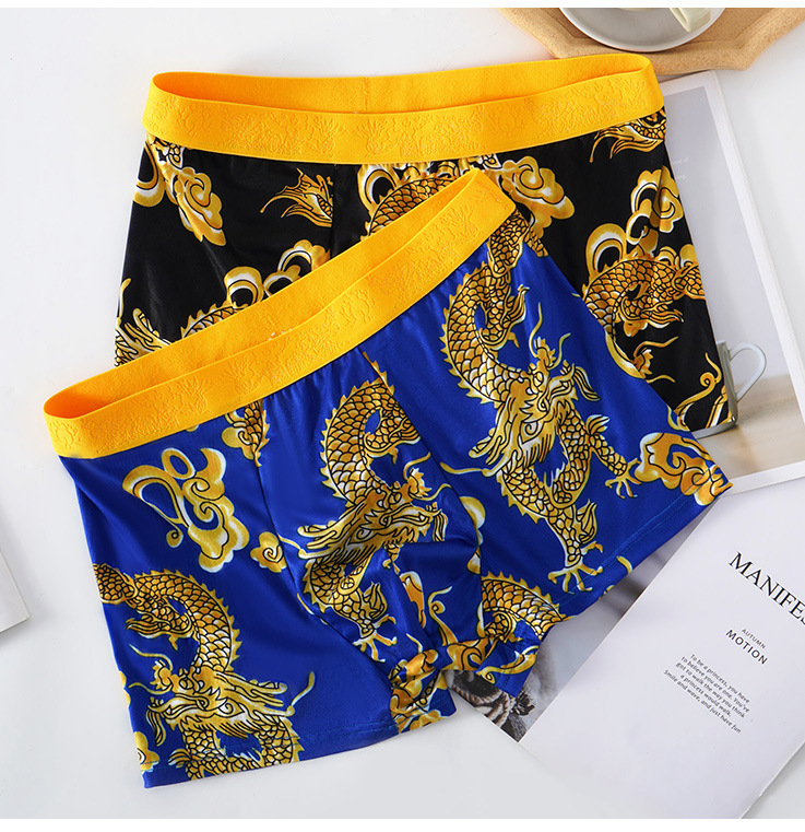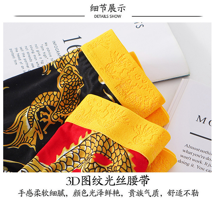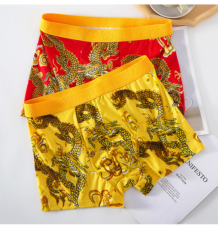 中国風の金龍男性下着ドラゴン柄プリントボーイズボクサーブリーフドラゴン干支年ボクサーブリーフ国民トレンドパンツ