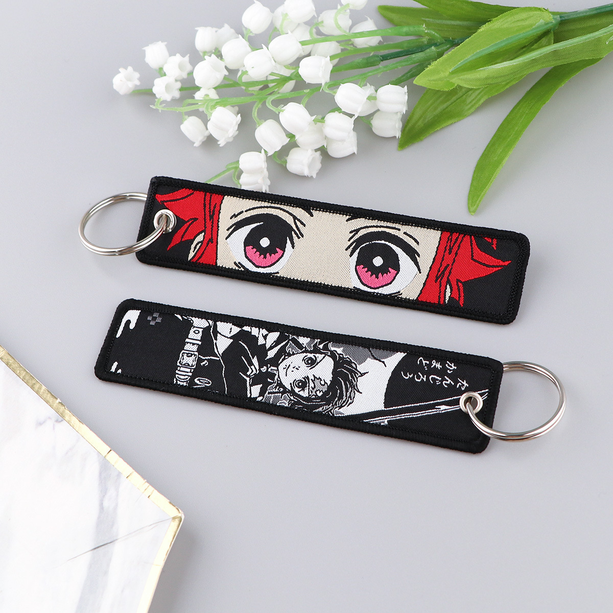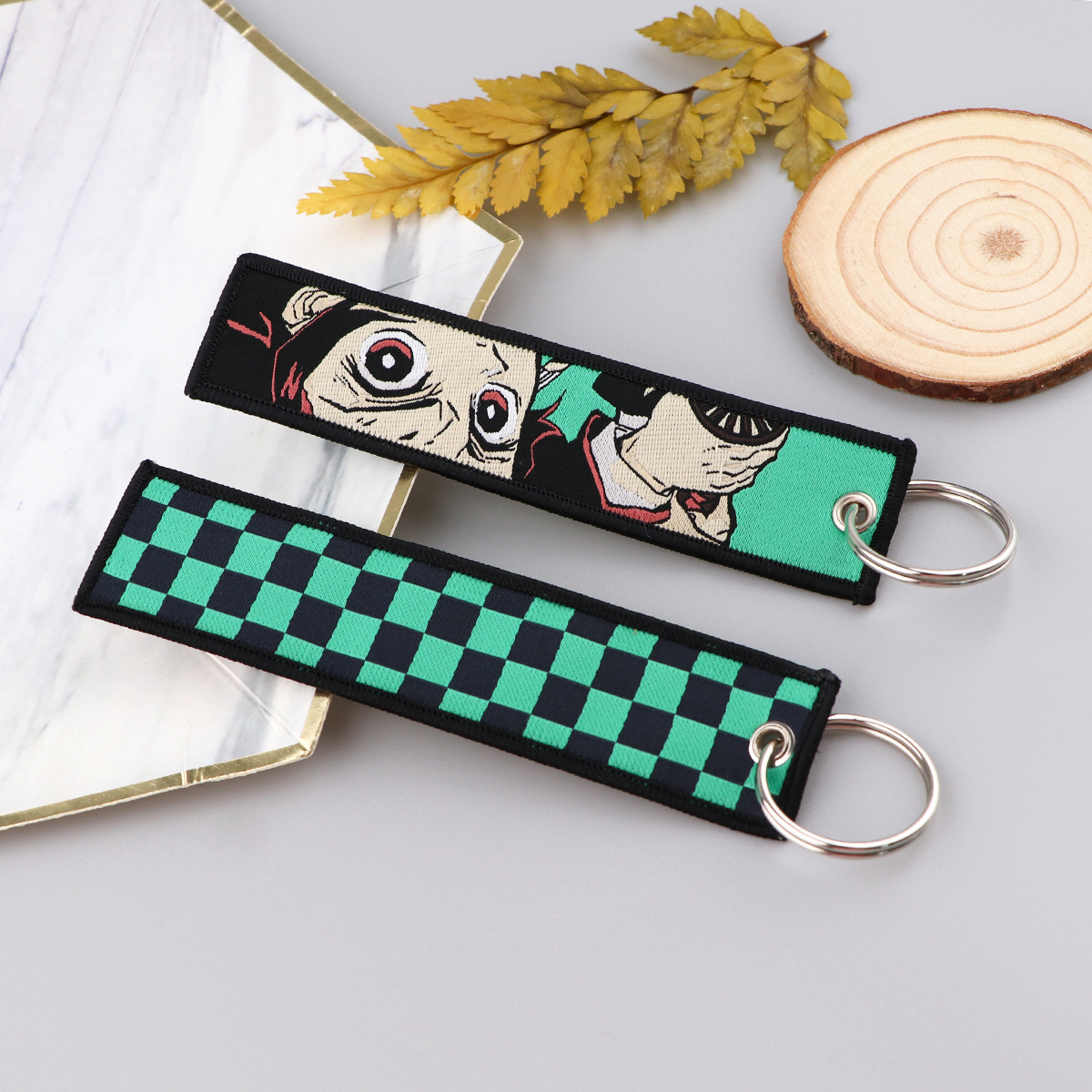 漫画デーモンスレイヤーアニメ織マークキーホルダーストラップ悪魔アクセス制御オフィス ID ペンダント生地キーホルダー