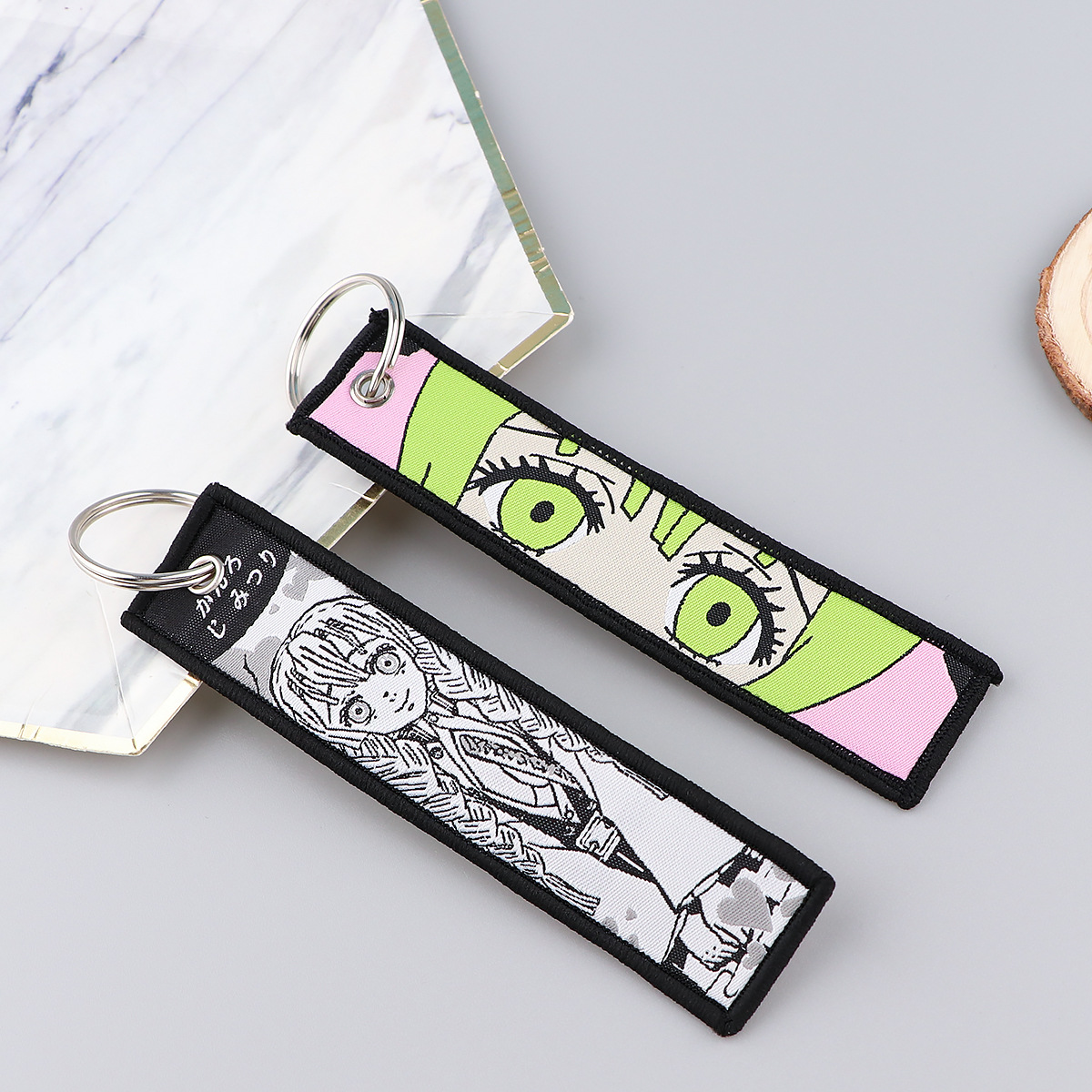 富江アニメナナ織りネームタグキーホルダー、通学証・社員証用ストラップ、布製トレンド漫画風飾り