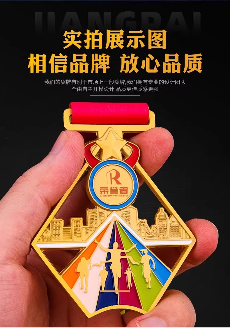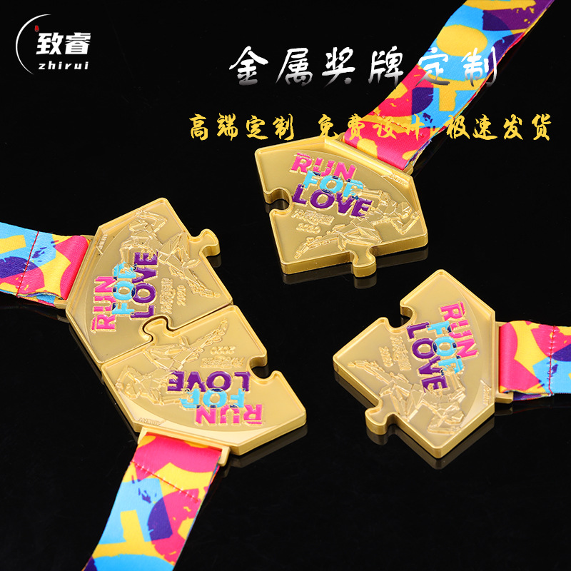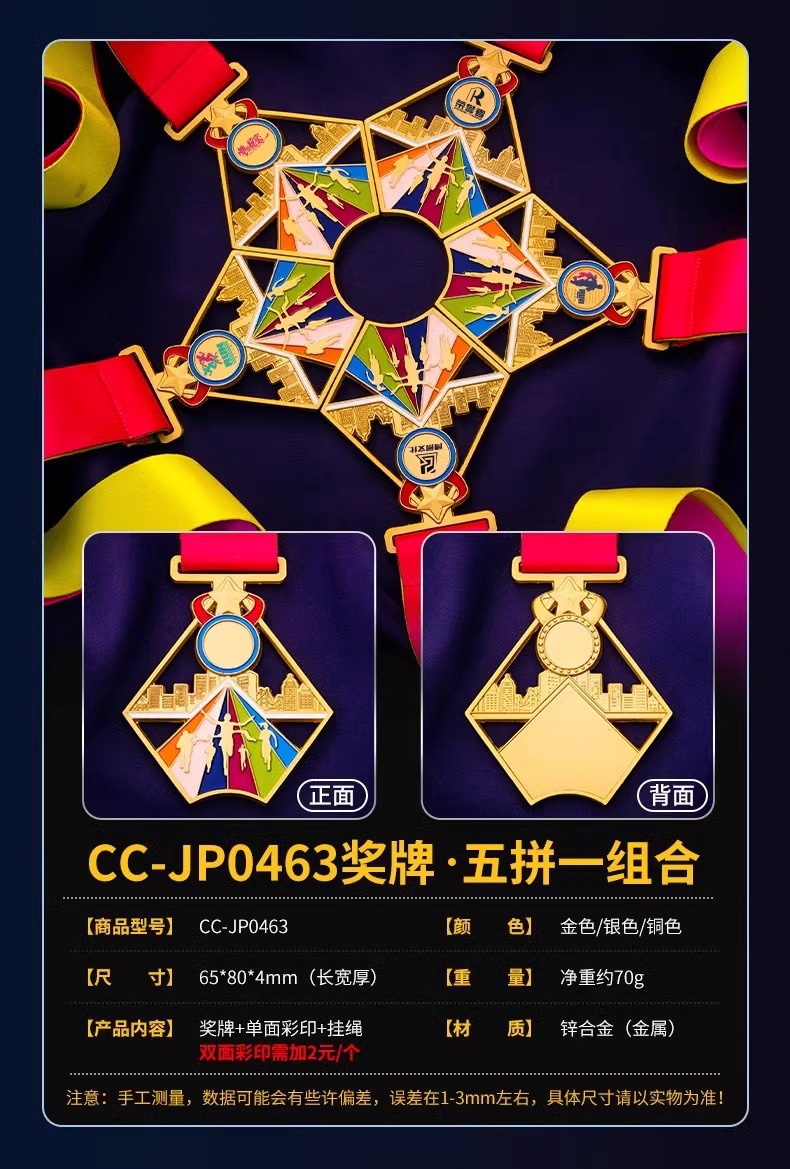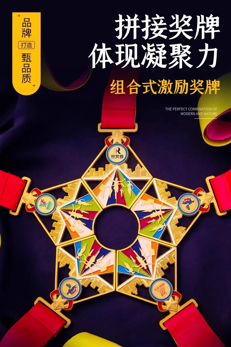 メダルカスタマイズ創意チームは組み合わせの栄誉をつなぎ合わせて、ランニング記念品を四五六合一メダルにします。