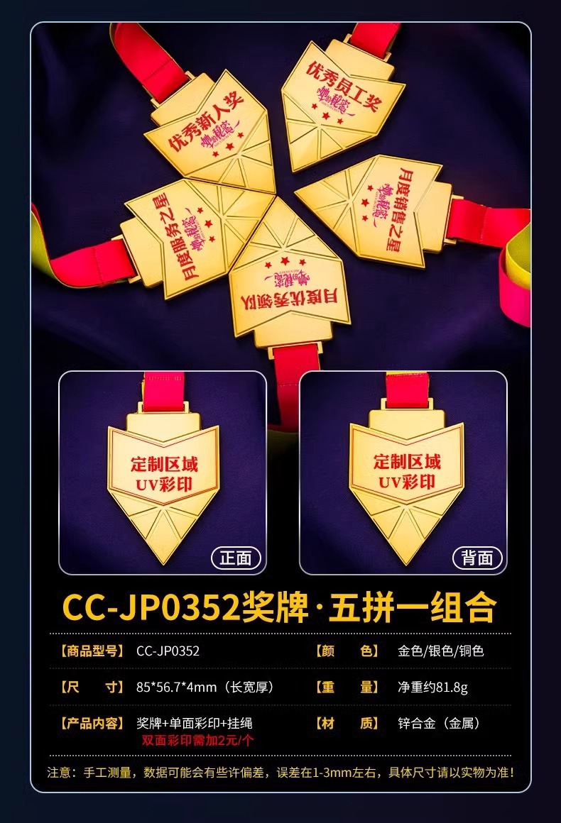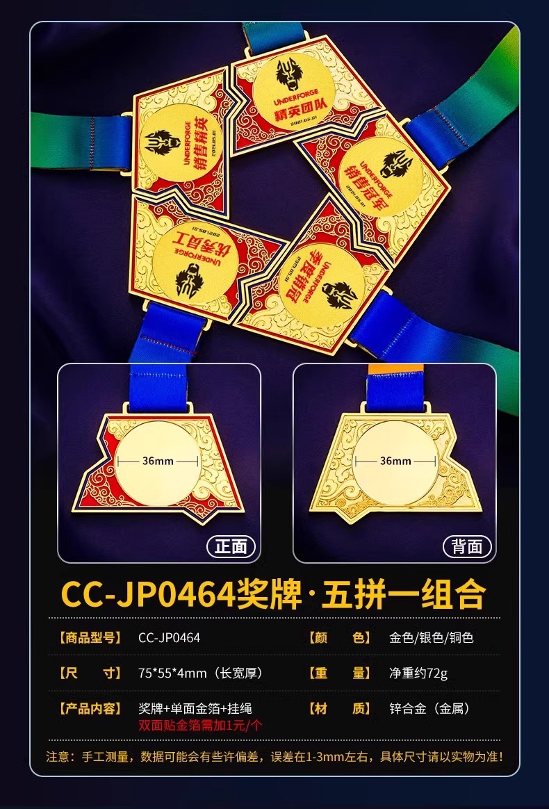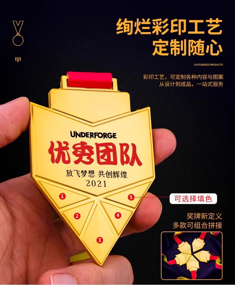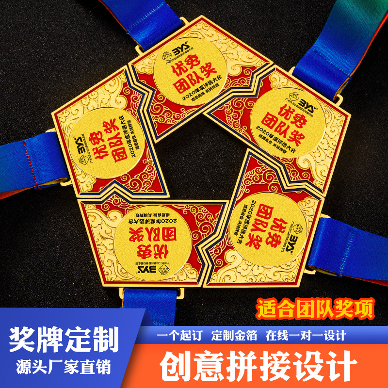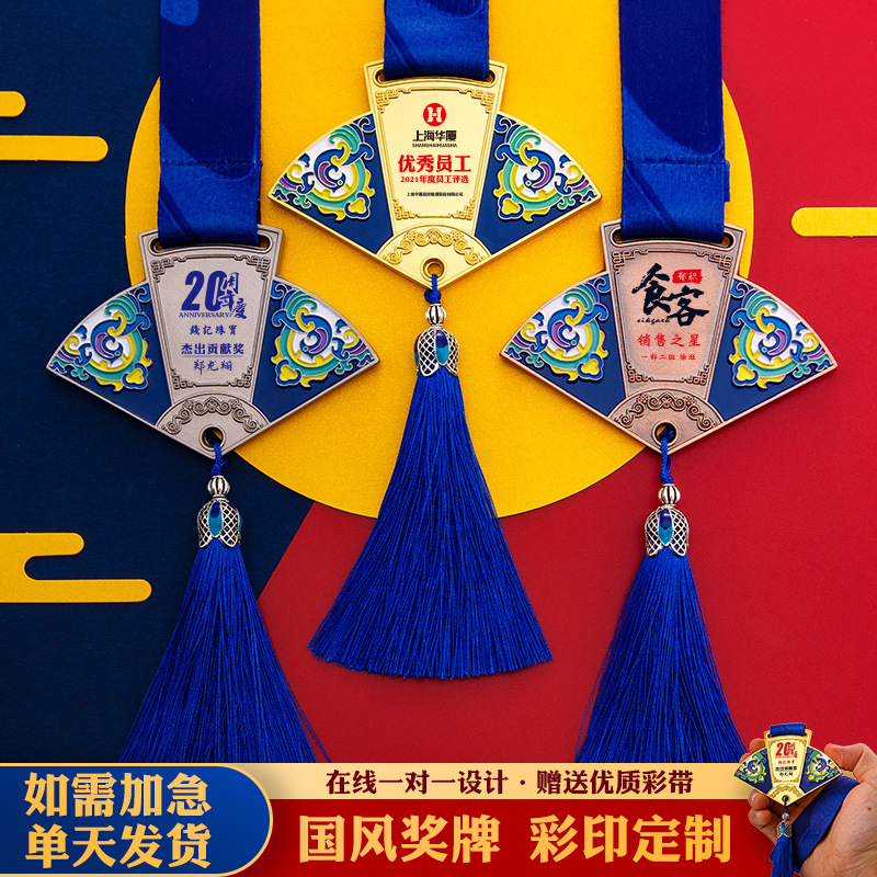 中国風創意メダル優秀社員販売冠チーム栄誉トロフィー運動会金属看板扇形