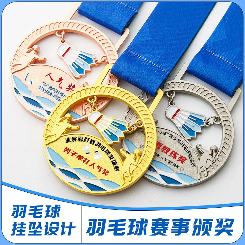 悬挂羽毛球比赛奖牌创意金属挂牌大型运动会马拉松体育赛事纪念牌