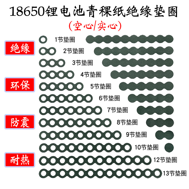18650電池正極中空シール0.2厚絶縁貼付負極中実ガスケット1-13連青穂紙スペーサー