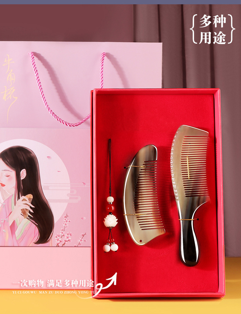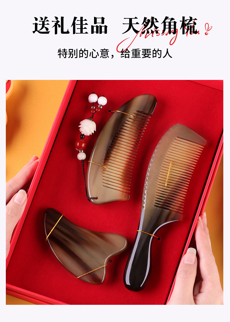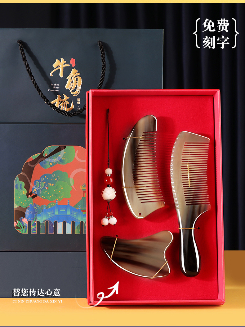 メーカー卸売り天然厚手牛角櫛マッサージ櫛旧正月ギフトボックス母の日櫛さんプレゼント