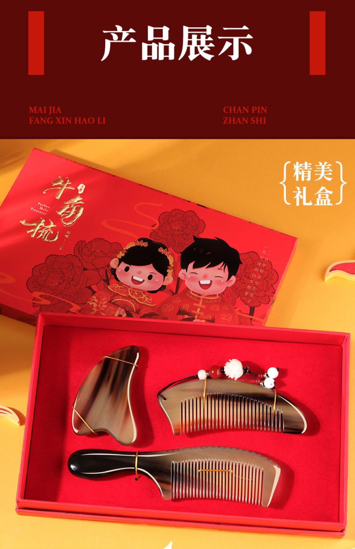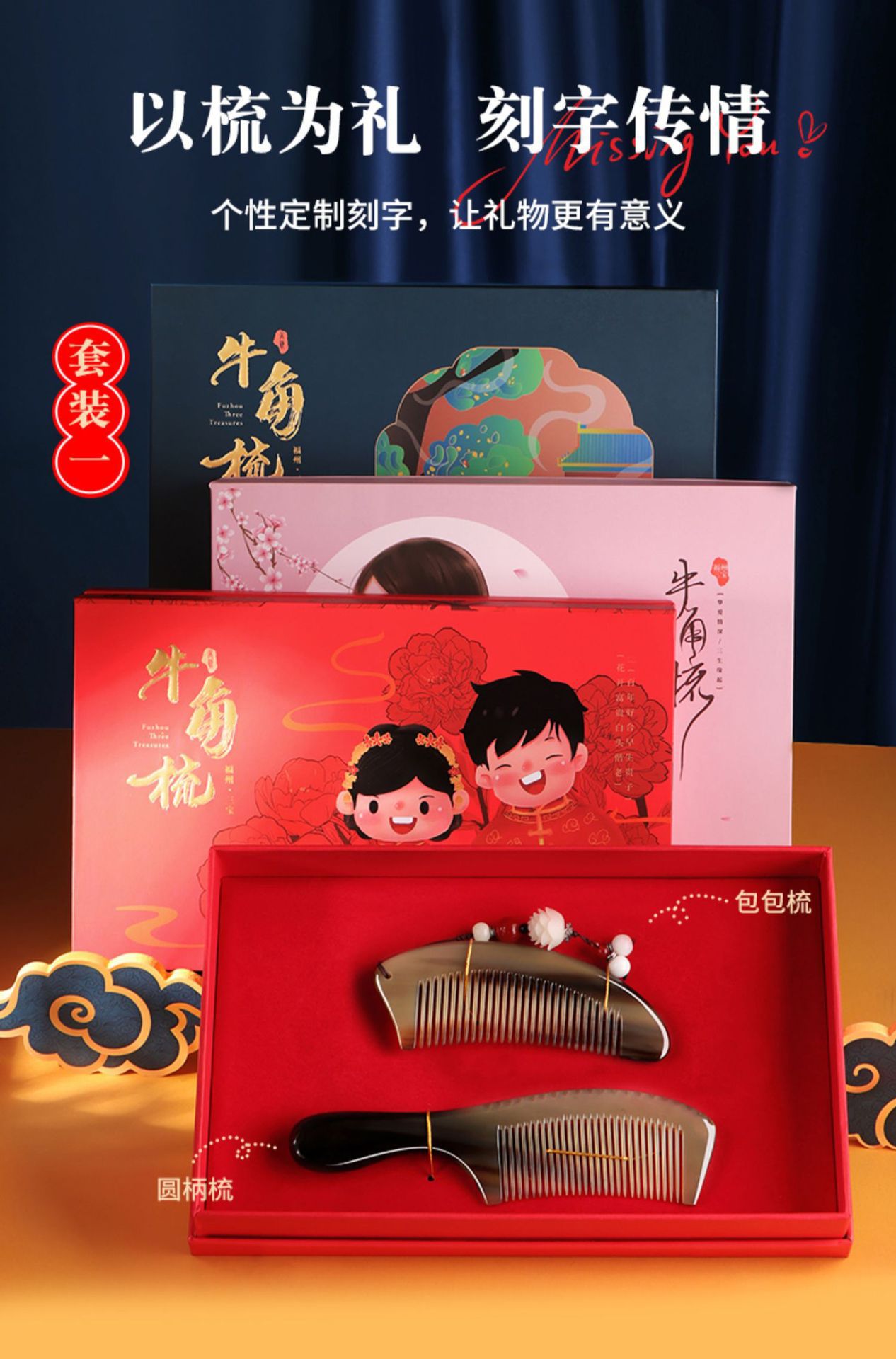 牛角梳礼盒套装结婚梳子女士礼物防静可刻字送礼谢师宴高端礼物
