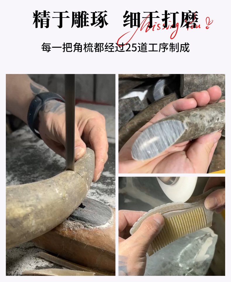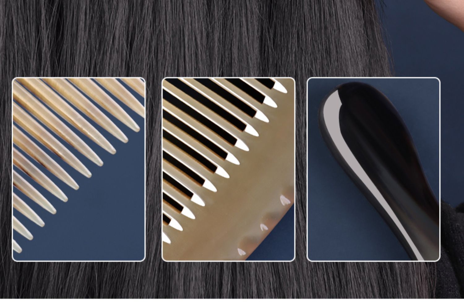厂家批发精品加厚制作牦牛角梳子雕花牛角梳印LOGO直播间多款可选