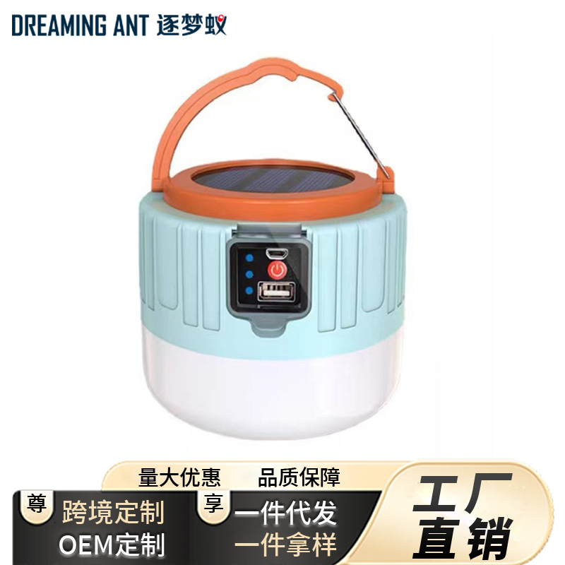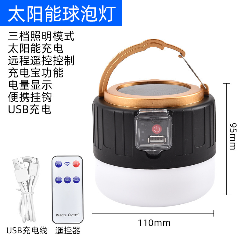 LED新款太阳能露营灯家用应急夜市地摊灯户外USB充电球泡灯野营灯