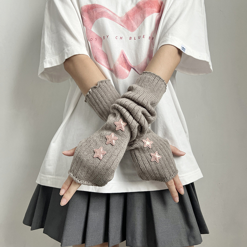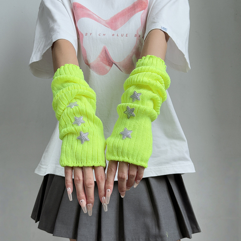 日本の少女星ミレニアムy 2kギャル五角星ニット指保温手袋秋冬袖カバーブーム