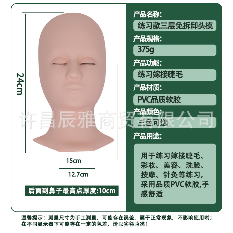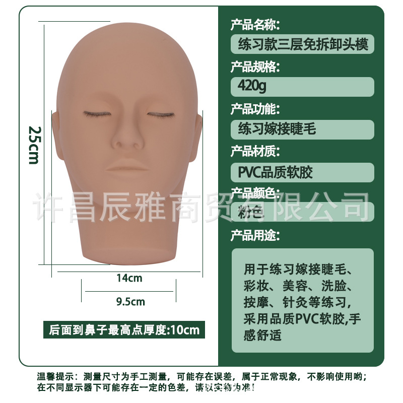 カラー 練習用ヘッドモデルピンク01,濃い色の練習の頭の型は3対のまぶたを含みます。,肌の色の練習の頭の型は3対のまぶたを含みます。,ピンクの練習用ヘッドモデルには、3組のまぶたが含まれています