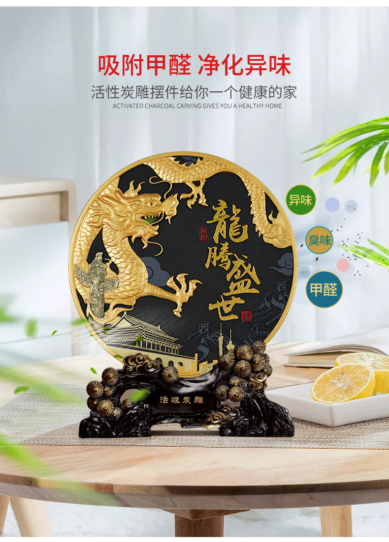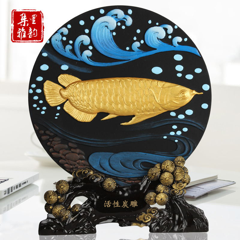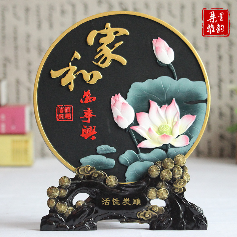 活性炭彫刻工芸品メーカービジネス移転プレゼント円盤炭素彫刻置物百福図天下第e福字