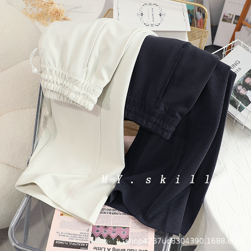 L~L~同款桑蚕丝绵羊毛女士大口袋窄版阔腿裤休闲百搭显瘦运动长裤
