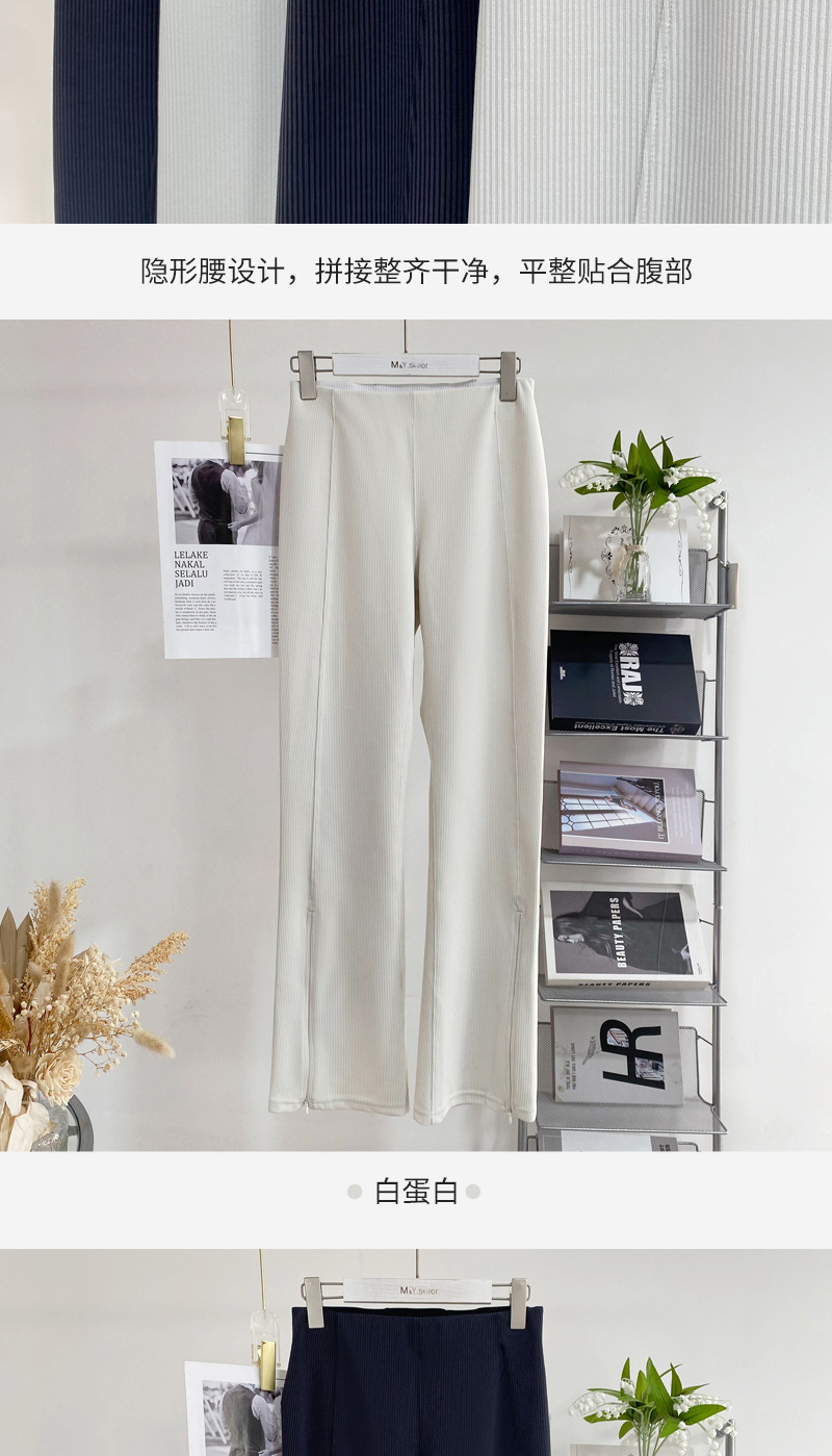 Luluクリーム系の裸感のズボンは腰が高くてお尻を持ちます。