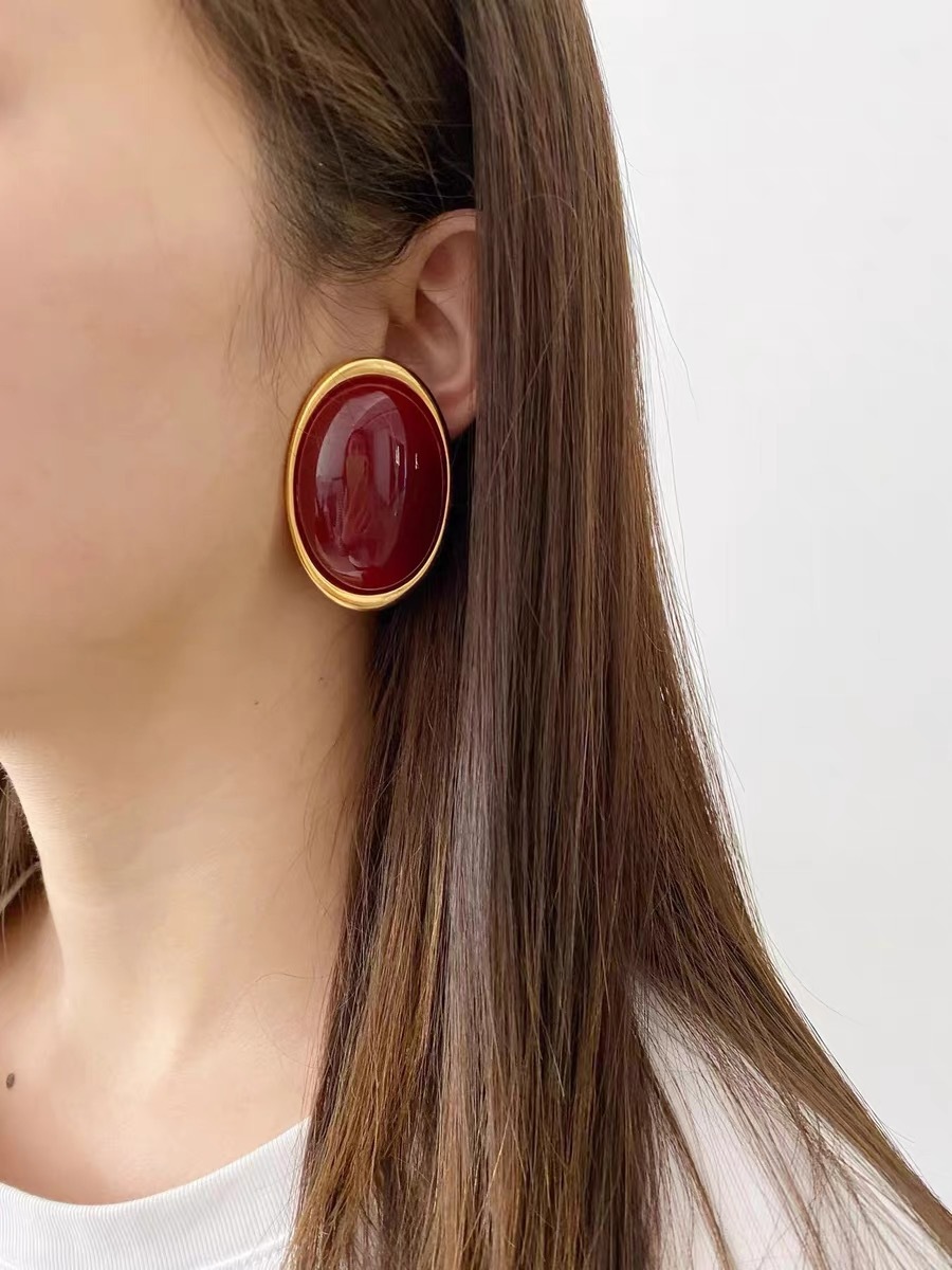 欧米の軽豪華なレトロ高級感のあるワインレッド樹脂の楕円形のイヤリングはシンプルで雰囲気があります。