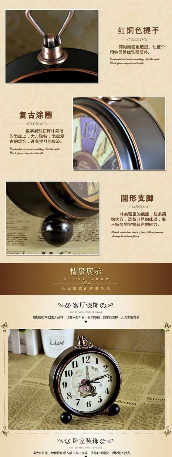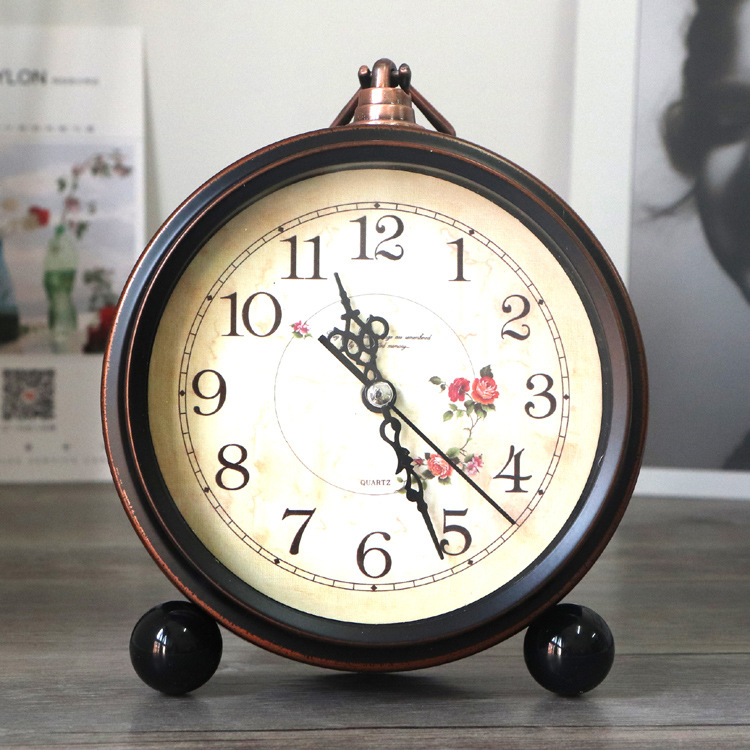 レトロヨーロッパ式田園創意目覚まし時計怠け者静音学生目覚まし時計シンプルなベッドの頭の小さい目覚まし時計の台時計