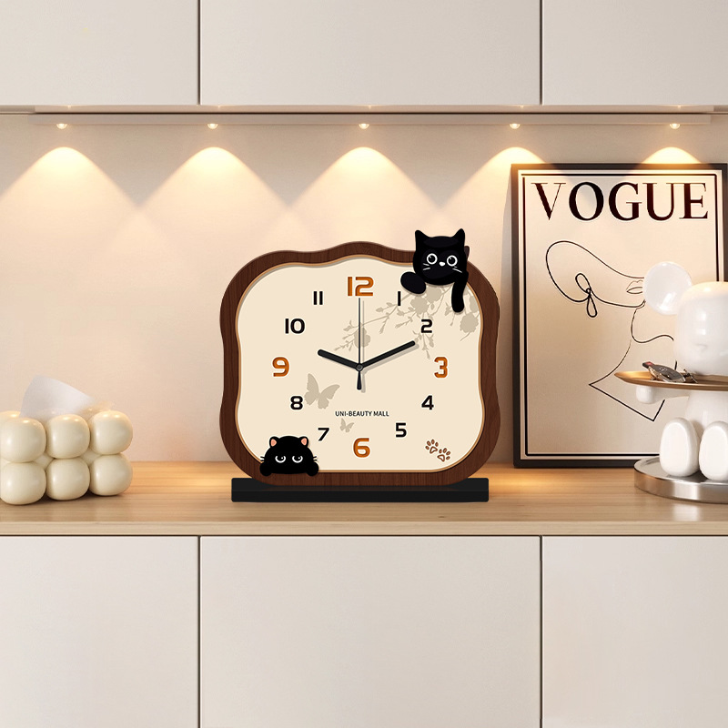 创意卡通桌面时钟摆台式座钟钟表2025新款可爱小猫高级感装饰小摆