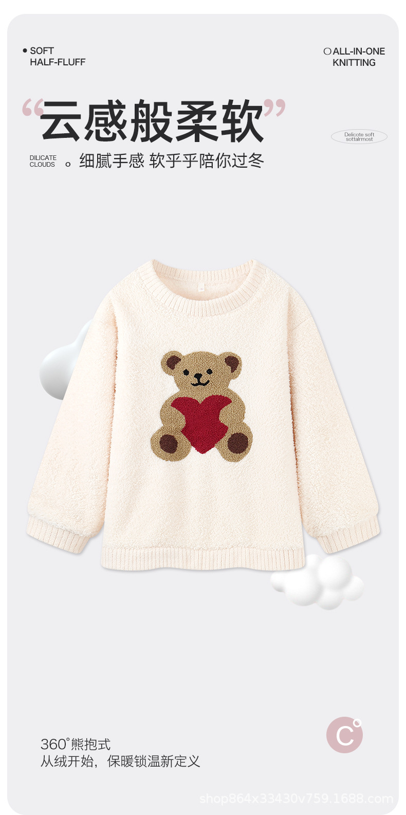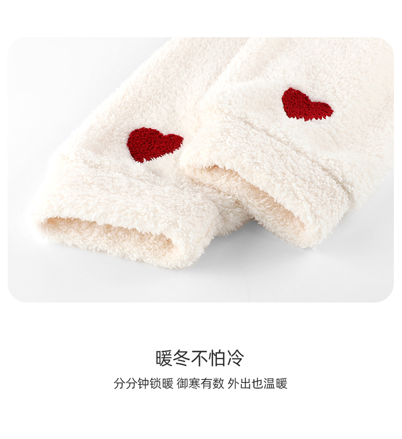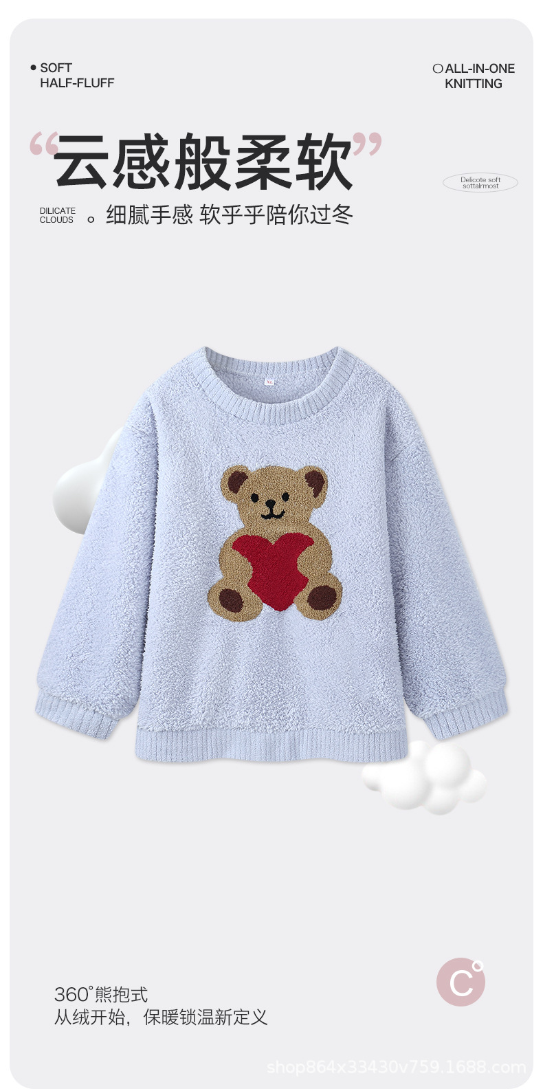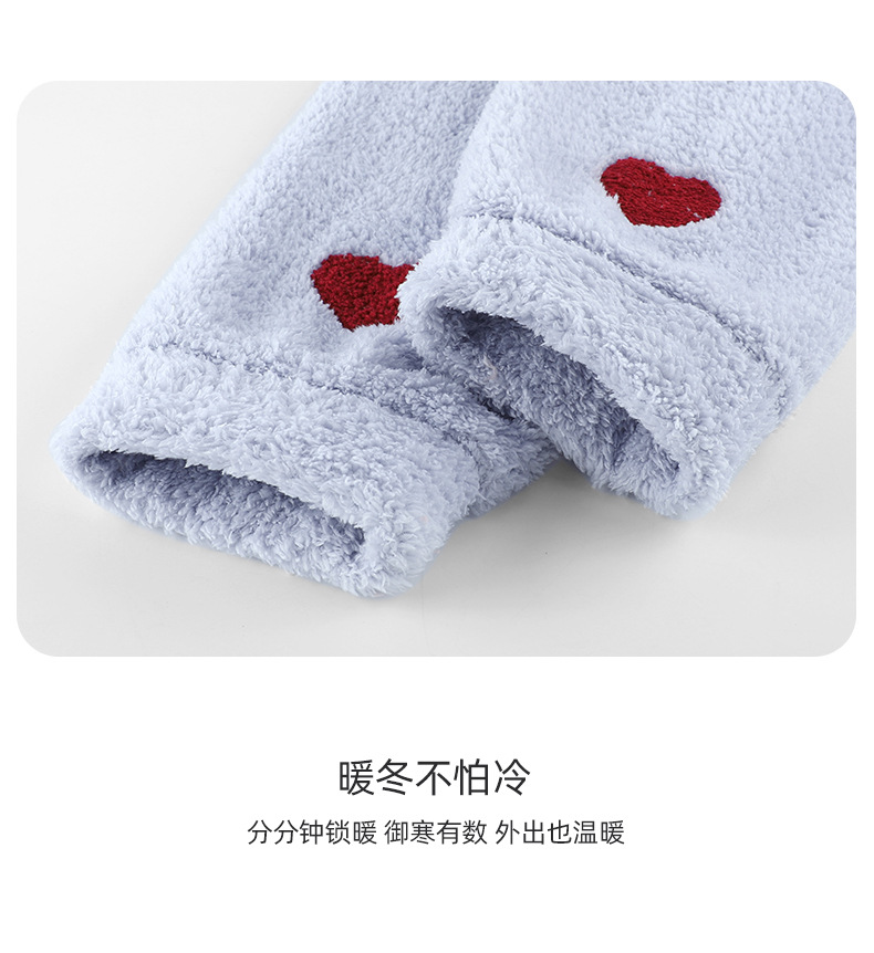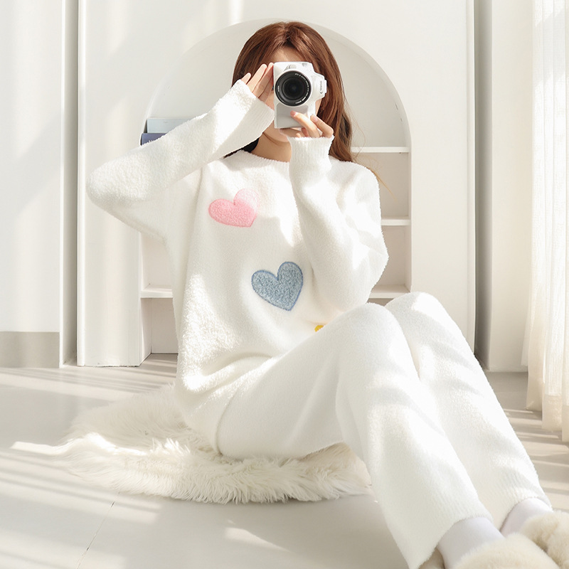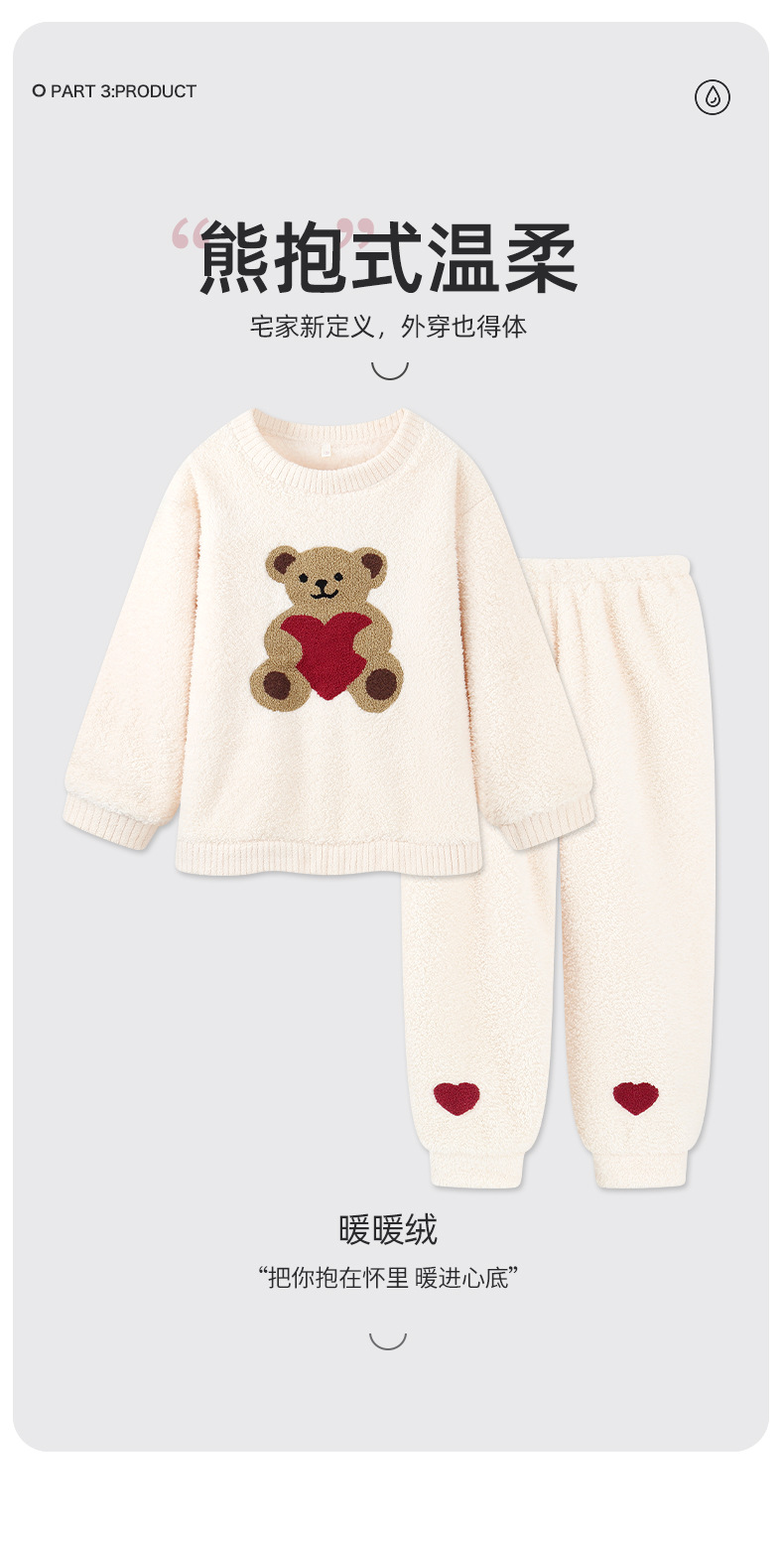 爱心小熊可爱冬季绒睡衣女款圆领珊瑚绒舒适休闲家居服套装可外穿
