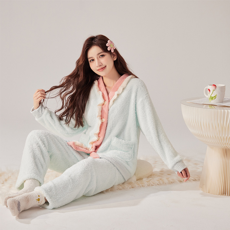 2025冬季珊瑚绒睡衣女简约高级感网红甜美加厚休闲少女家居服套装