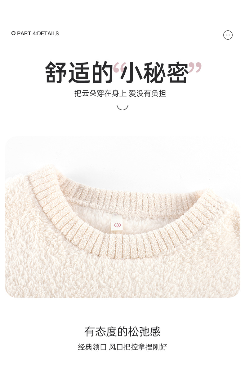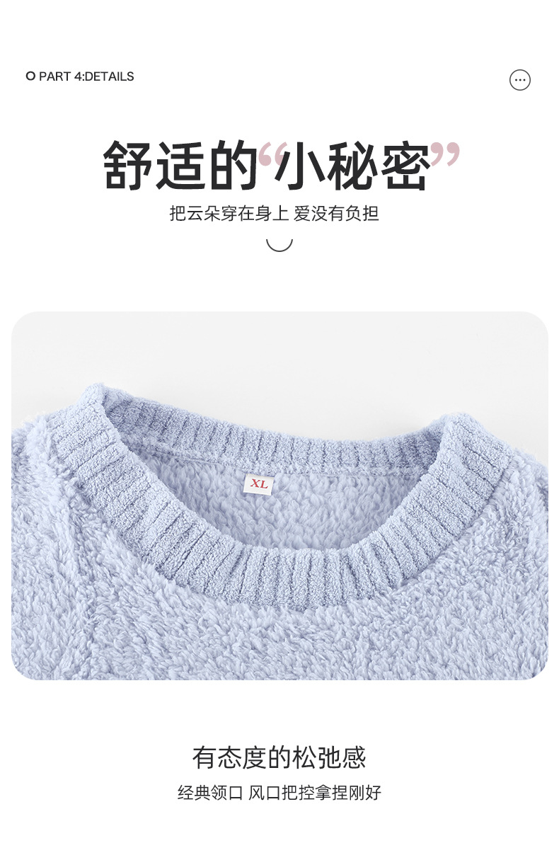 日本系パジャマ女性の冬はふわふわしていて、丸首がゆったりしています。