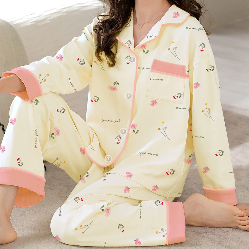 2025年春秋用 レディースパジャマ 長袖 片面100%純綿 プリント柄 外出可 カジュアル ホームウェア 綿100% 肌に優しい