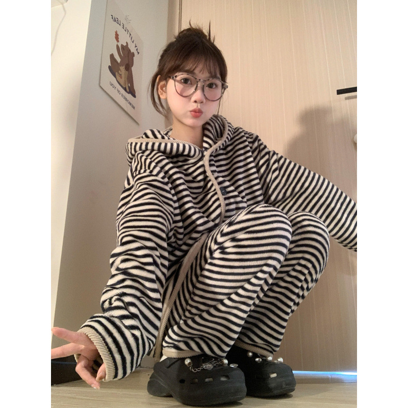 睡衣女冬新款法兰绒网红爆款ins风简约韩版连帽珊瑚绒家居服套装