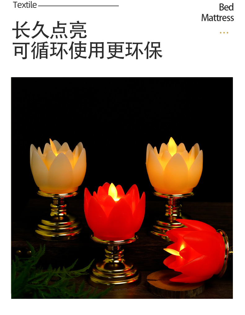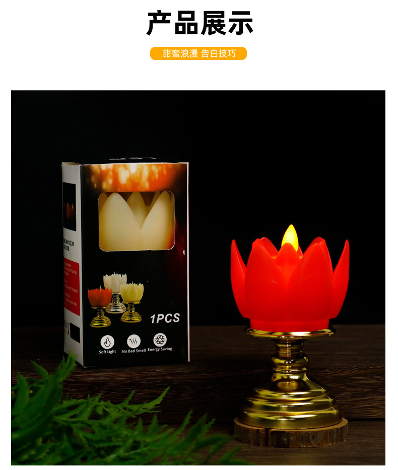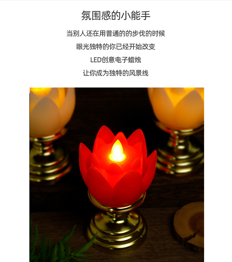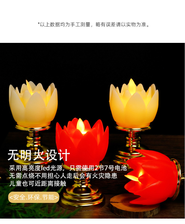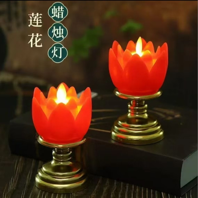 莲花蜡烛灯LED仿真塑料电子蜡烛拜神供佛长明灯新年红色电蜡烛灯