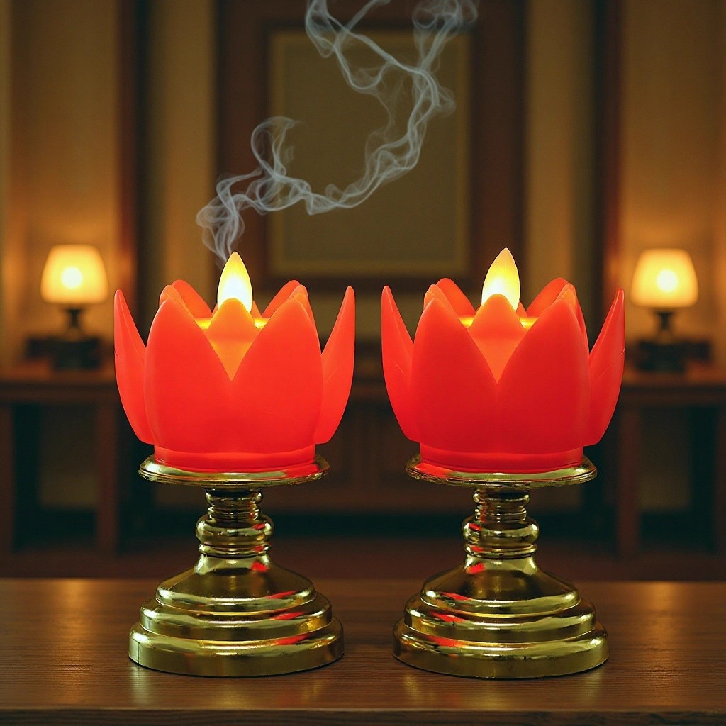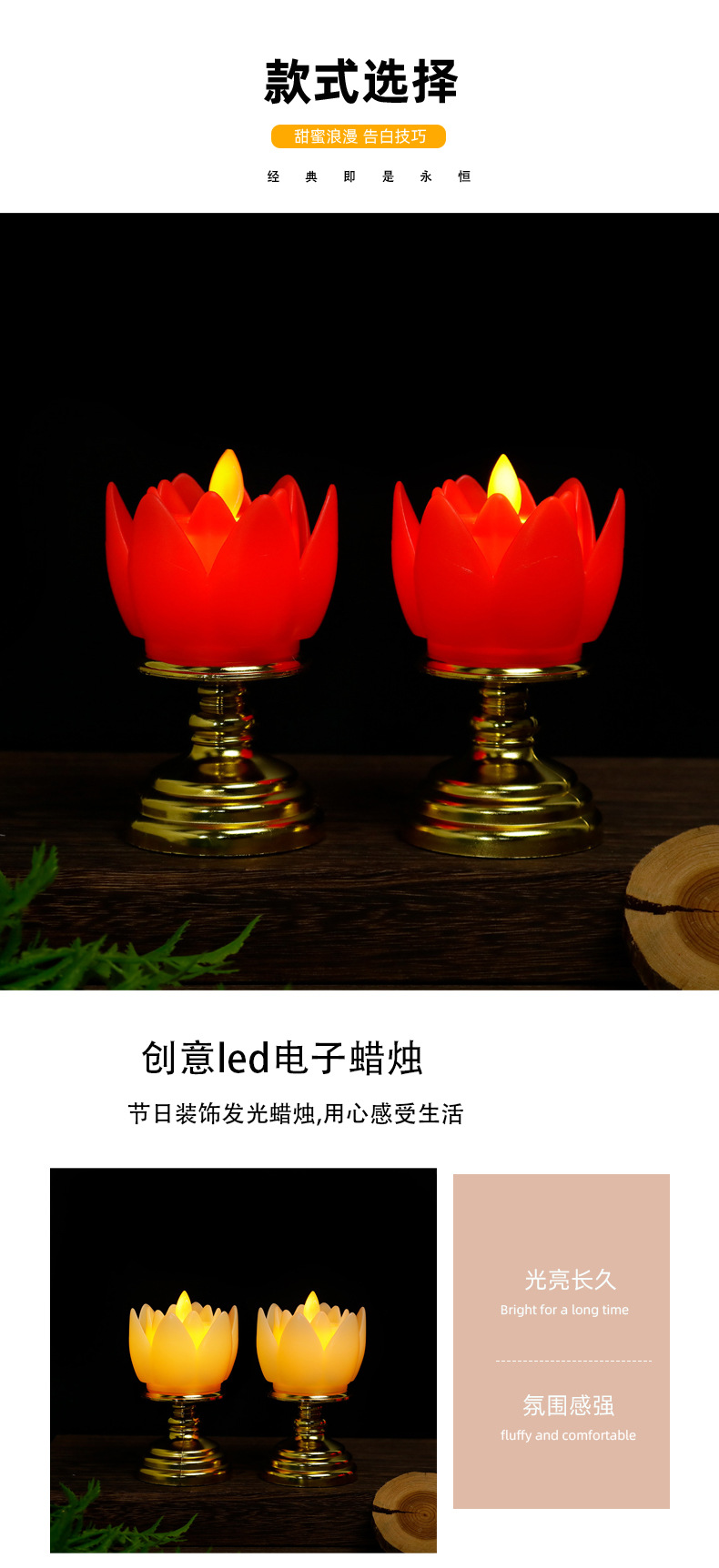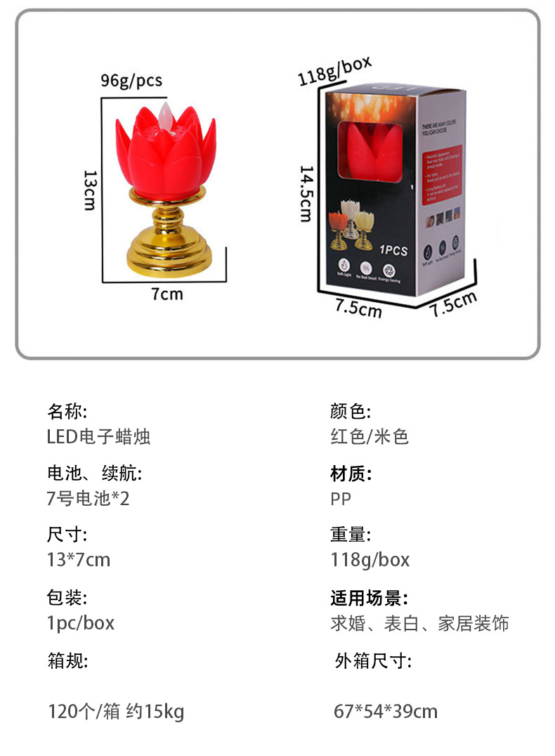 莲花蜡烛灯LED仿真塑料电子蜡烛拜神供佛长明灯新年红色电蜡烛灯