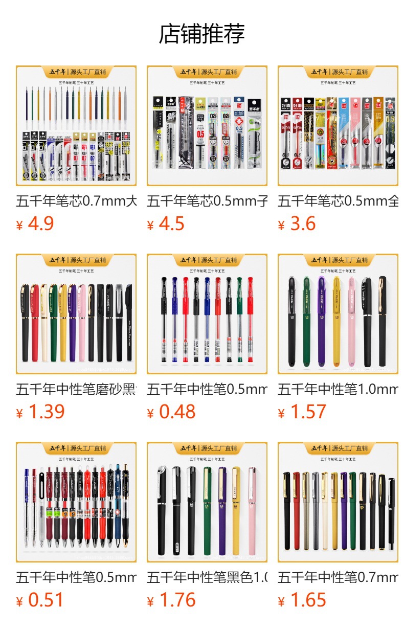 五千年静音ペン0.5速乾学生用筆記ペン高品質静音ペン卸売中性ペン