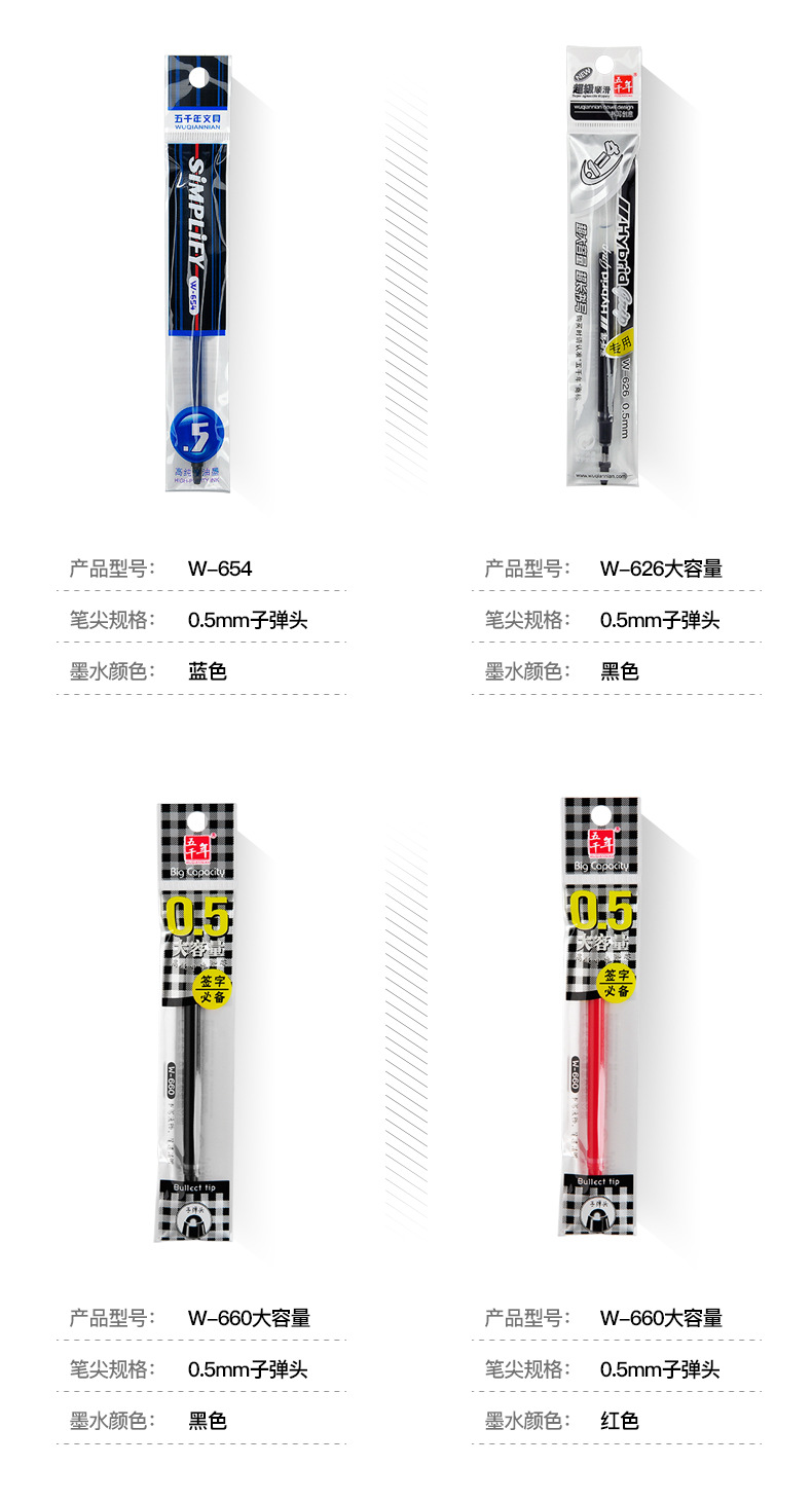 五千年加太ペン芯中性ペン芯緑紫青0.7mm1.0mm黒赤大容量弾丸ヘッド