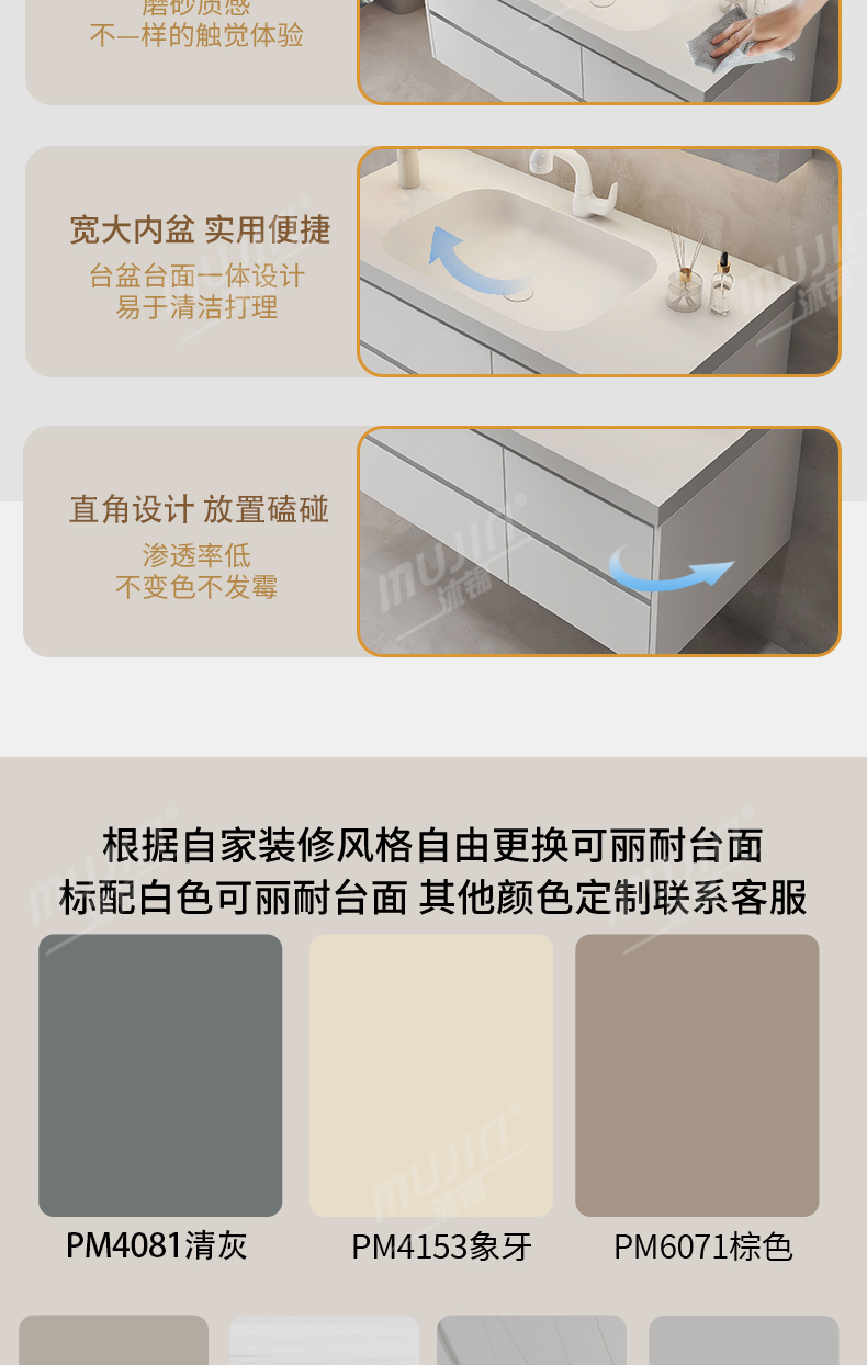 可丽耐一体盆台面人造石浴室キャビネットセット洗面台洗面台洗面台トイレ台下盆