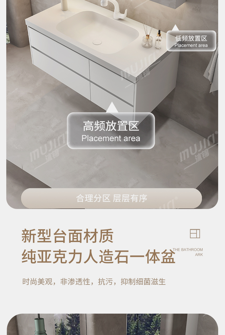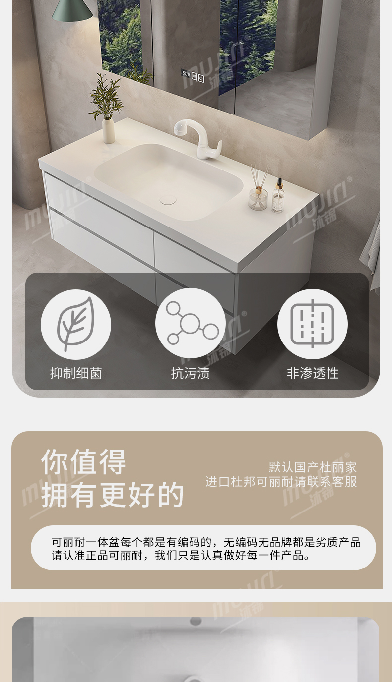 輸入デュポン可丽耐一体盆現代シンプルな浴室キャビネットセットトイレ手洗い洗面台非常にシンプルな風